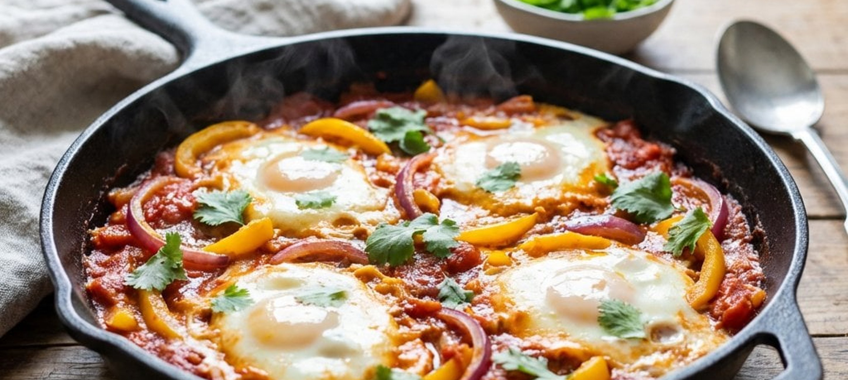 - 2Die Pfanne vom Herd nehmen, die Shakshouka mit frisch gehacktem Koriander bestreuen und sofort servieren. Dazu passt hervorragend frisches Fladenbrot oder Baguette.