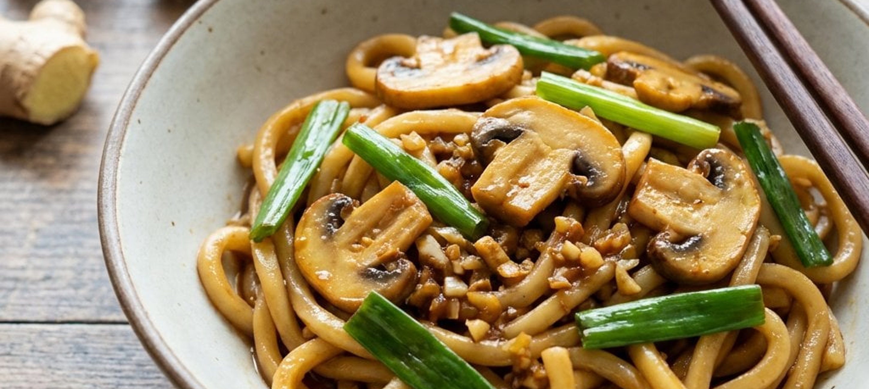 Servieren Sie die Udon-Nudeln mit einem Spritzer Limette für zusätzliche Frische.