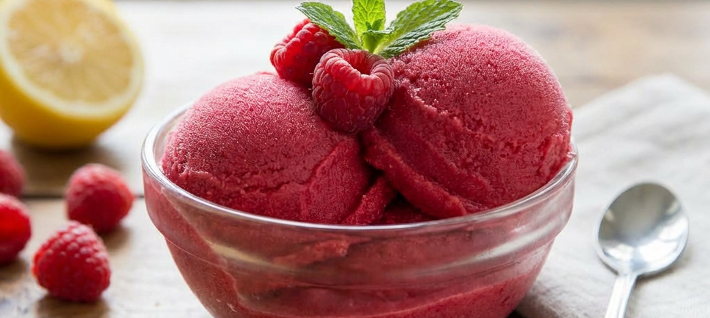 Du kannst die Himbeeren auch ganz einfach gegen andere Beeren austauschen und dir zum Beispiel ein fruchtiges Erdbeer- oder Blaubeer-Sorbet zaubern.