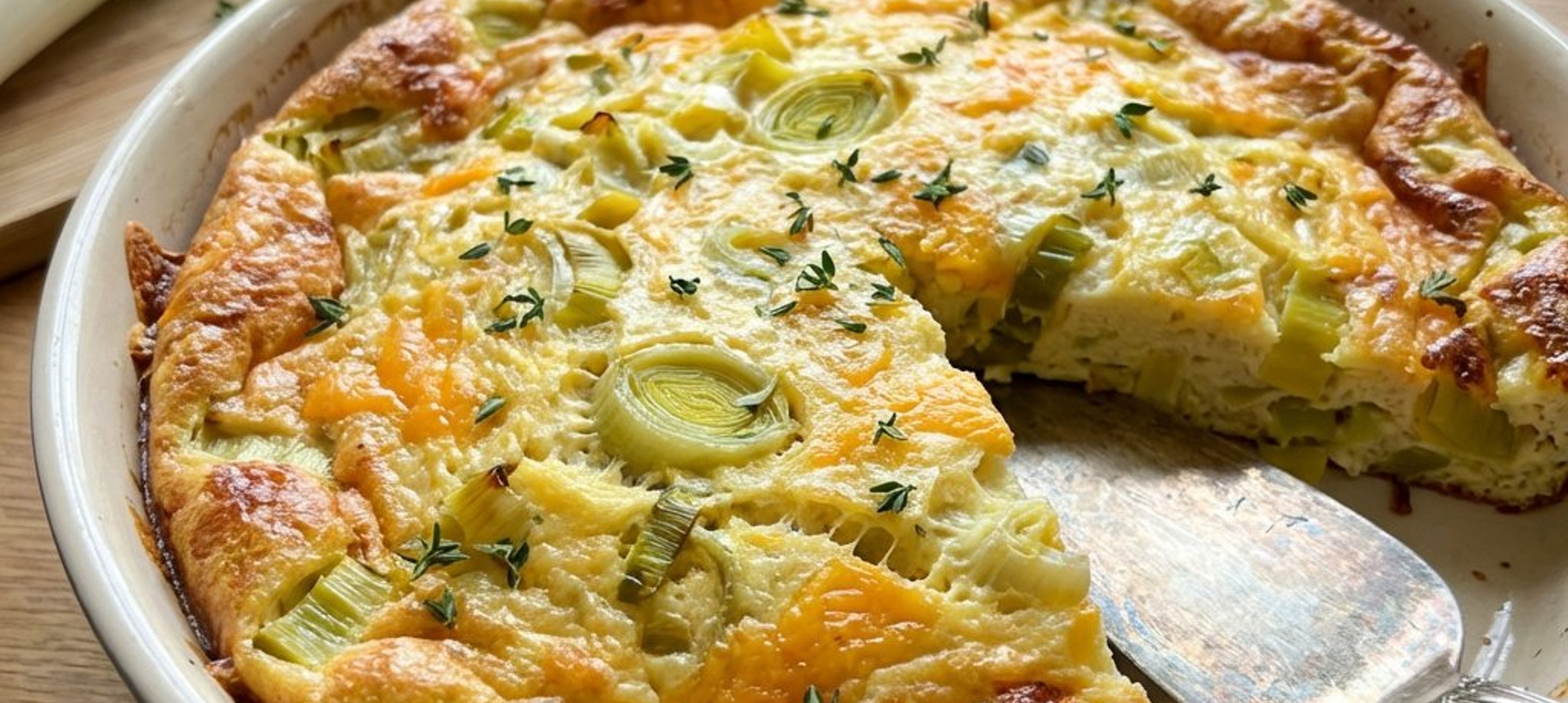 - 5Sobald die Lauchmischung weich gedünstet ist, gießen Sie die Eimasse in die Pfanne. Schalten Sie den Herd aus und stellen Sie die Pfanne in den vorgeheizten Ofen. Backen Sie die Frittata für 17–18 Minuten bei 185–190 °C goldbraun.
