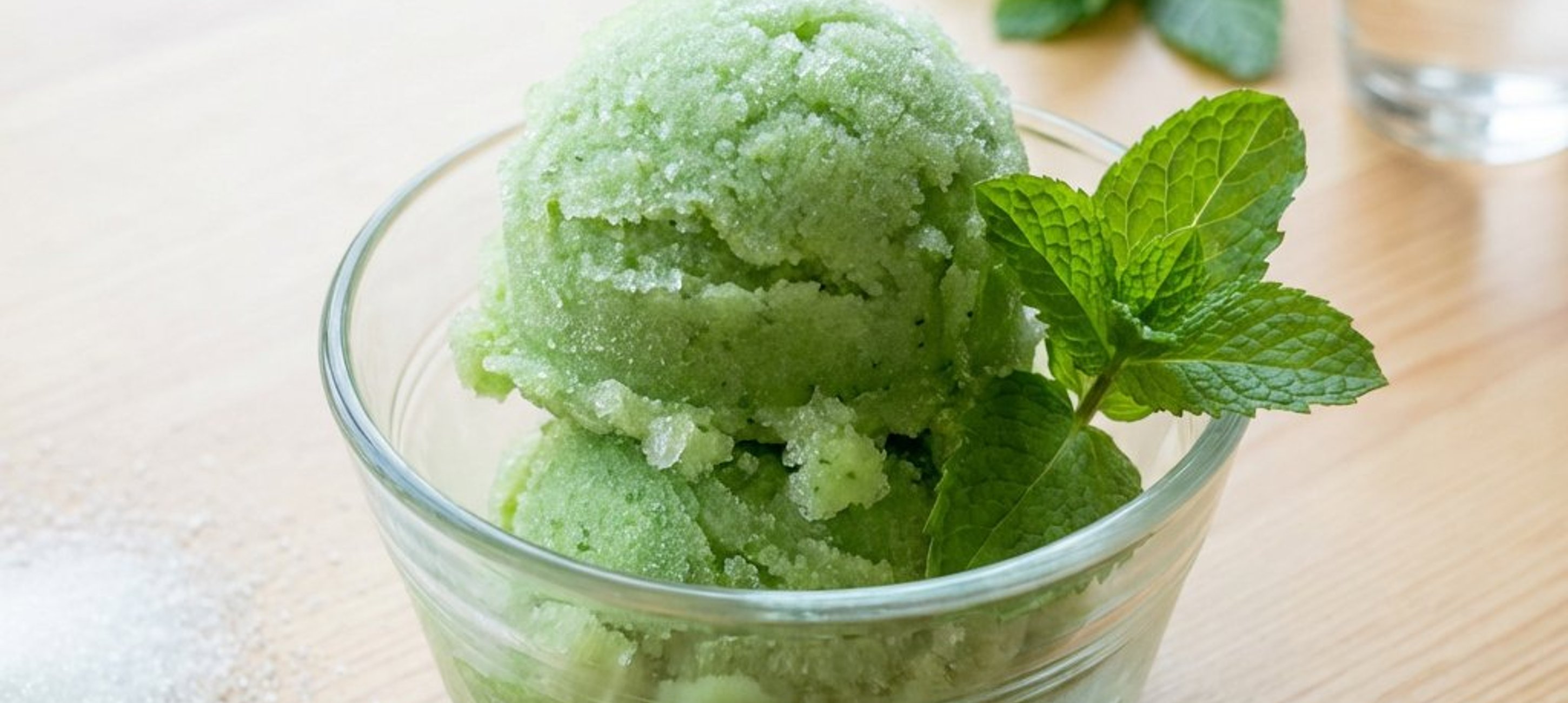 Für eine besonders cremige Konsistenz das Sorbet während des Gefrierens alle 30 Minuten mit einer Gabel kräftig durchrühren, um große Eiskristalle zu zerschlagen. Dieser Vorgang dauert insgesamt etwa 3 Stunden.
