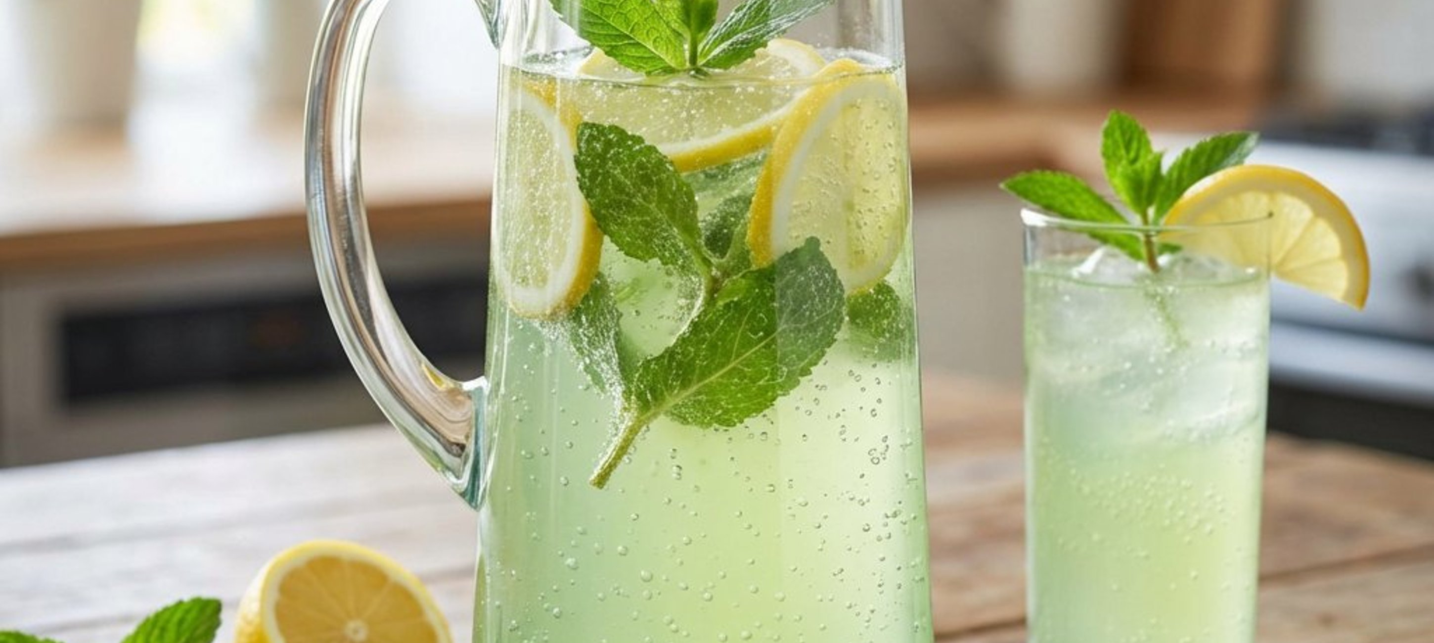 Servieren Sie die Limonade in hohen Gläsern mit einem extra Zweig Minze für das perfekte Sommer-Feeling. Ein Schuss Holunderblütensirup passt auch hervorragend dazu!