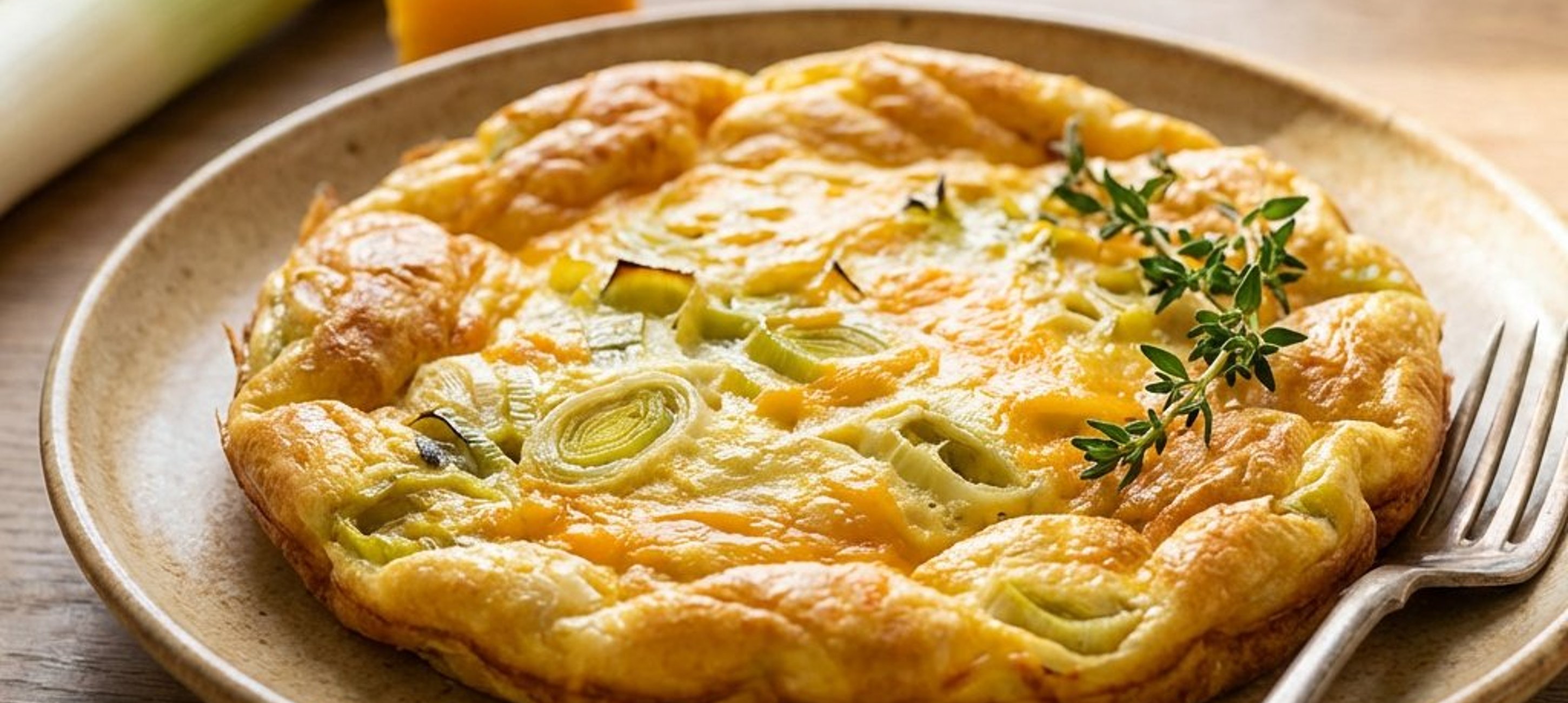 - 5Sobald die Lauchmischung fertig ist, gießen Sie die Eimasse in die Pfanne. Schalten Sie den Herd aus und stellen Sie die Pfanne in den vorgeheizten Ofen. Backen Sie die Frittata für 17–18 Minuten bei 185–190 °C, bis sie goldbraun und fest ist.