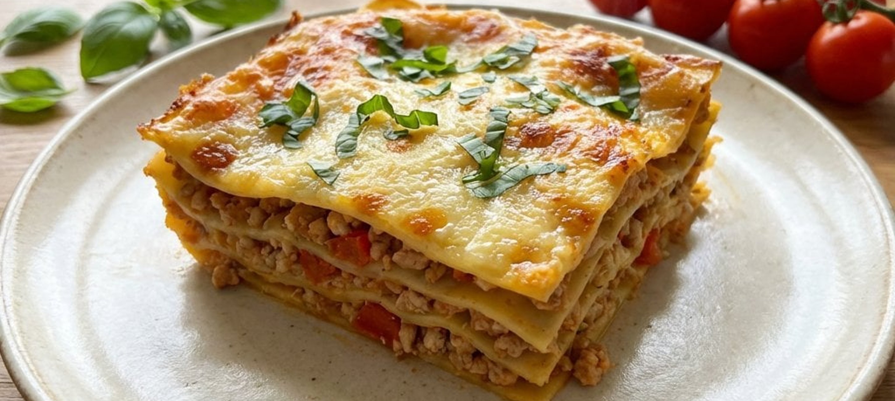 - 4Die Form mit Alufolie abdecken und im vorgeheizten Ofen bei 180–185 °C für etwa 50–60 Minuten backen. Danach die Folie entfernen, die Temperatur auf 200–210 °C erhöhen und die Lasagne für weitere 10 Minuten goldbraun fertig backen.