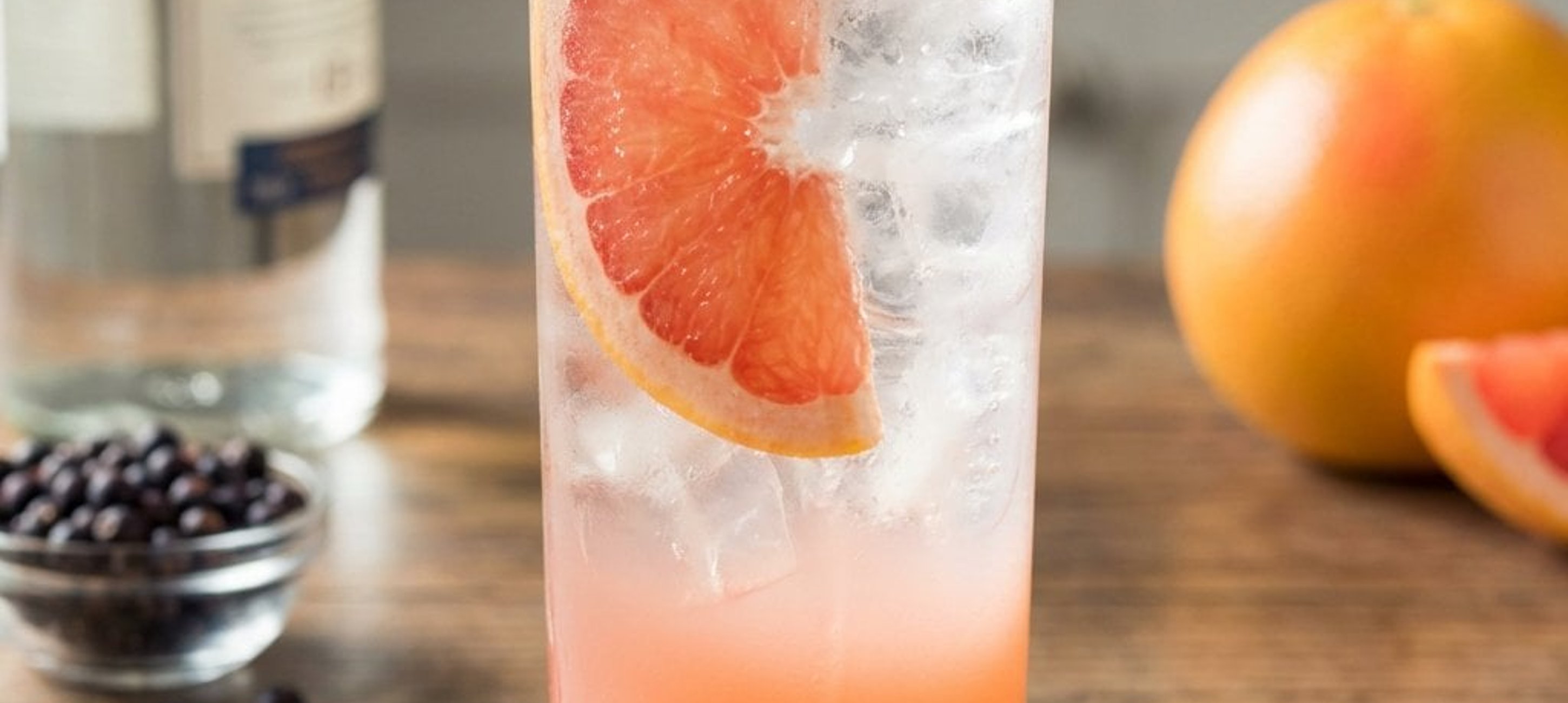 Für ein noch intensiveres Aroma können Sie die Grapefruitscheibe leicht am Glasrand reiben, bevor Sie sie in den Drink geben.