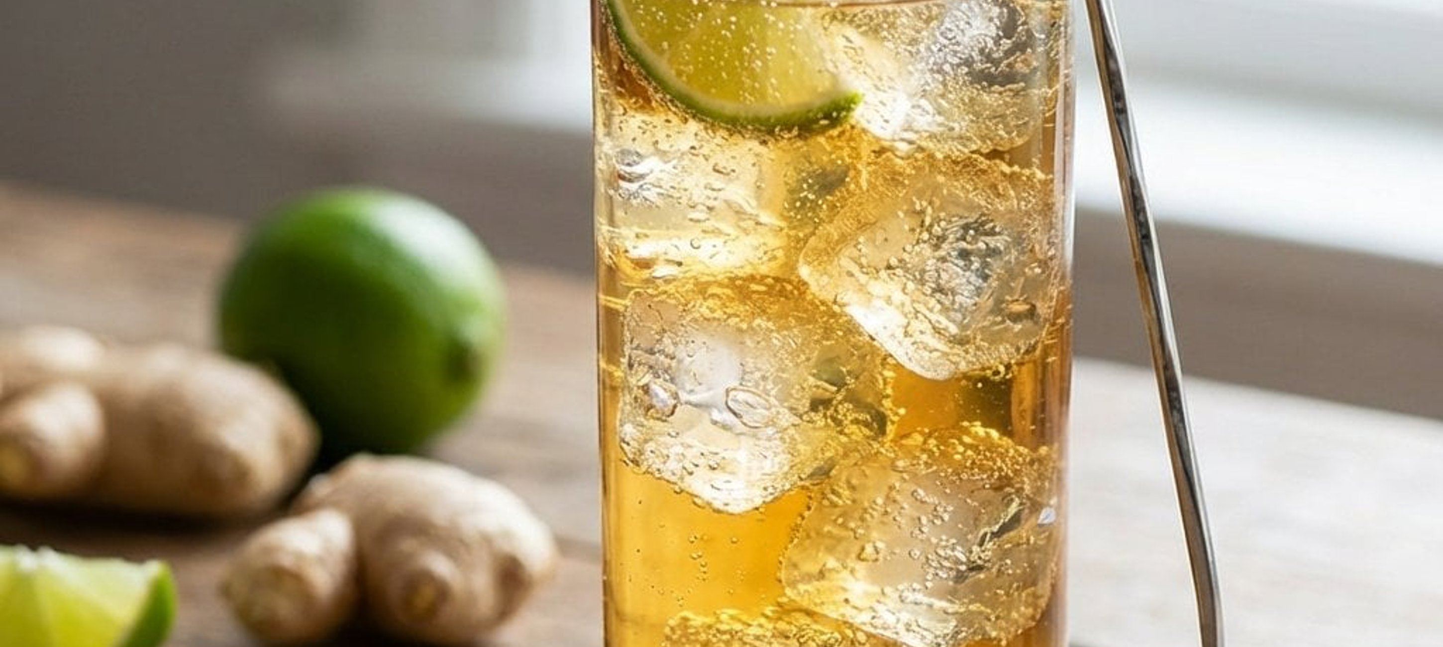 - 3Garnieren Sie den Drink zum Abschluss mit einer frischen Limettenscheibe und einem dünnen Stück Ingwer. Kurz umrühren und sofort genießen.