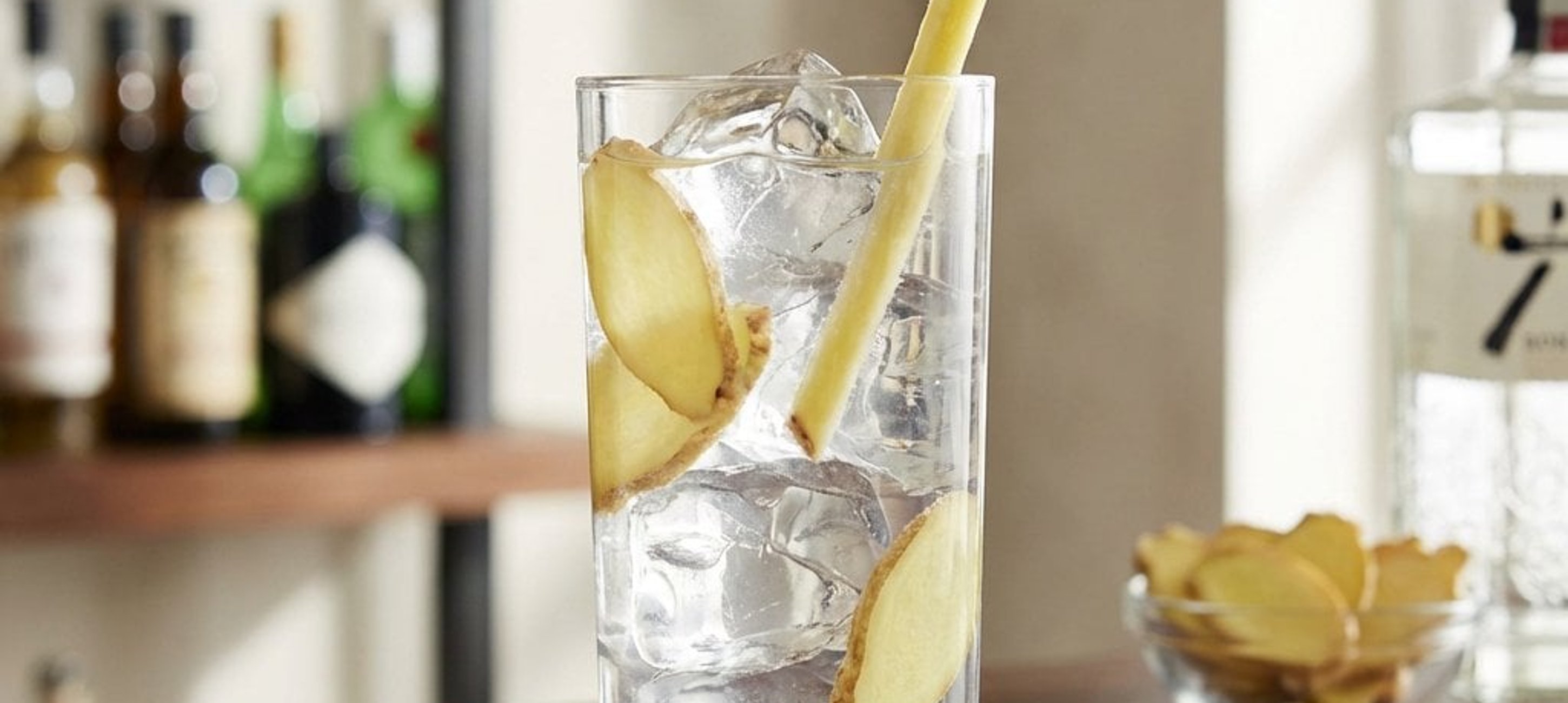 - 4Frischen Ingwer in feine Stifte oder Scheiben schneiden und in den Drink geben. Sofort genießen.