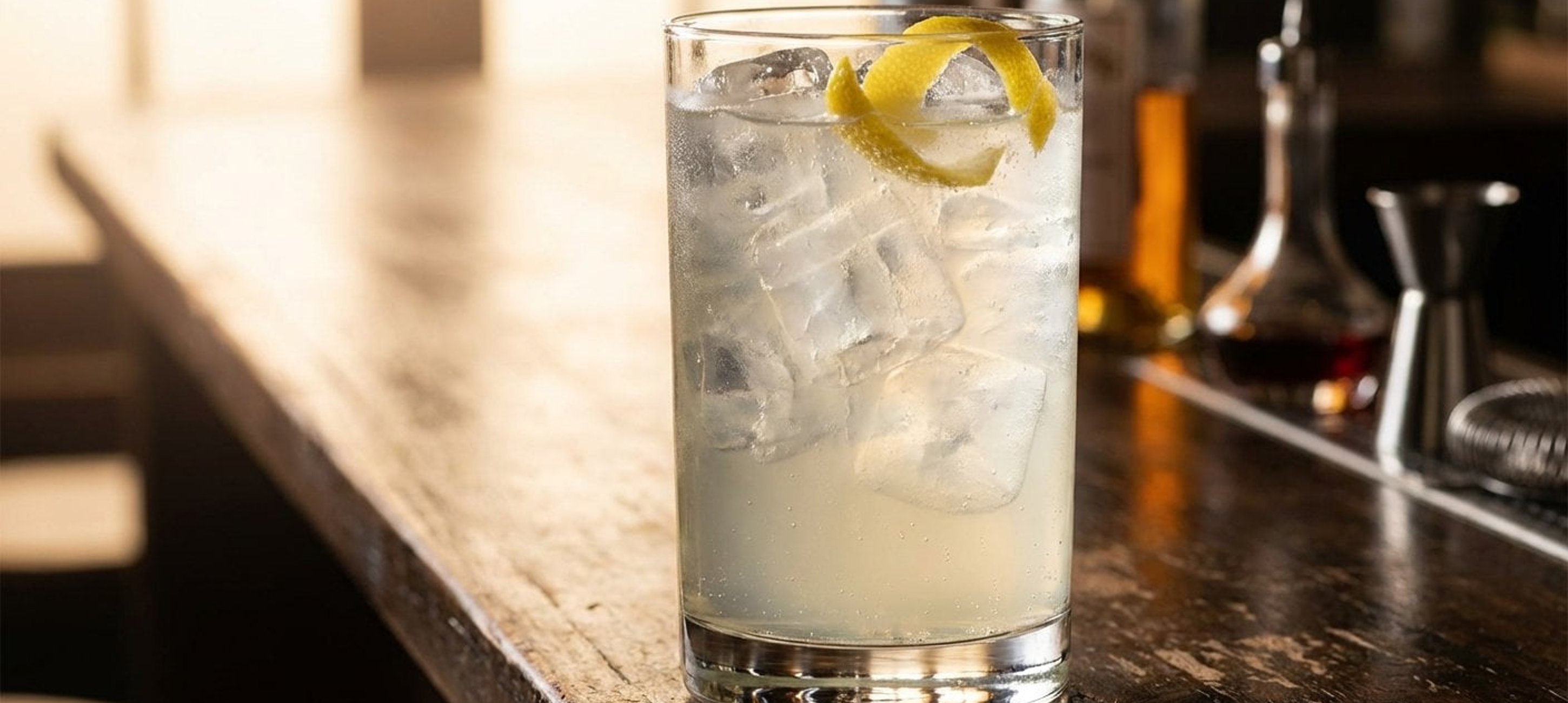 - 4Garnieren Sie den Highball zum Abschluss mit einem Streifen frischer Zitronenschale und servieren Sie ihn sofort.