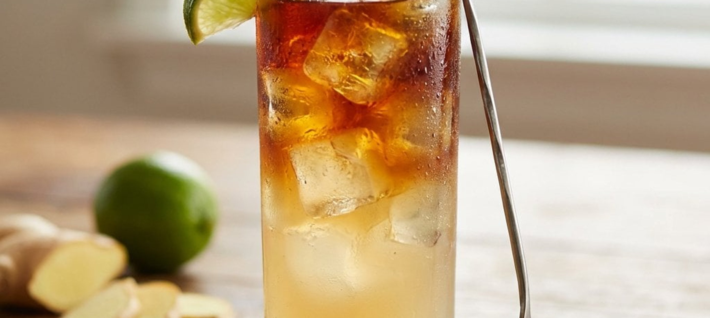 Für den perfekten 'Stormy'-Effekt gießen Sie den Rum vorsichtig über die Rückseite eines Barlöffels in das Glas.