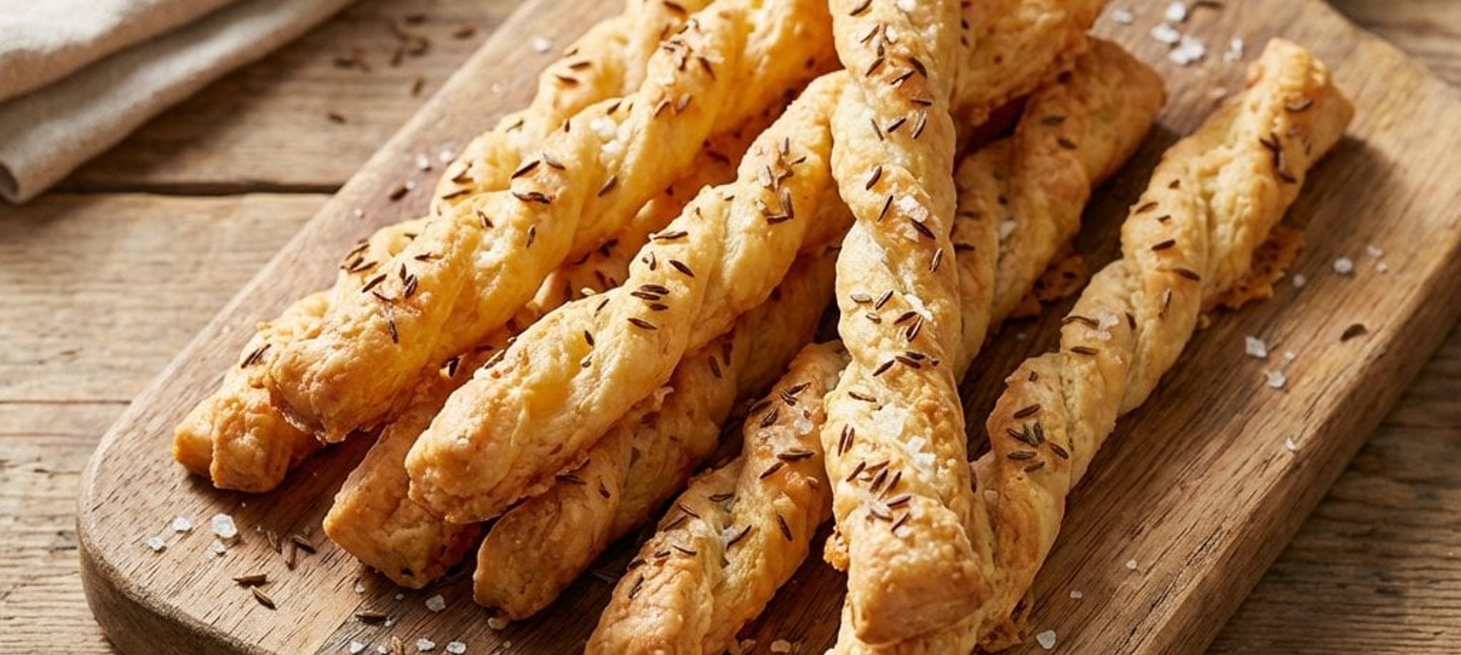 - 4Das restliche Ei verquirlen und die Stangen damit bestreichen. Nach Belieben mit Kümmel, grobem Meersalz oder noch etwas extra Käse bestreuen. Im vorgeheizten Ofen ca. 12 Minuten goldbraun backen.