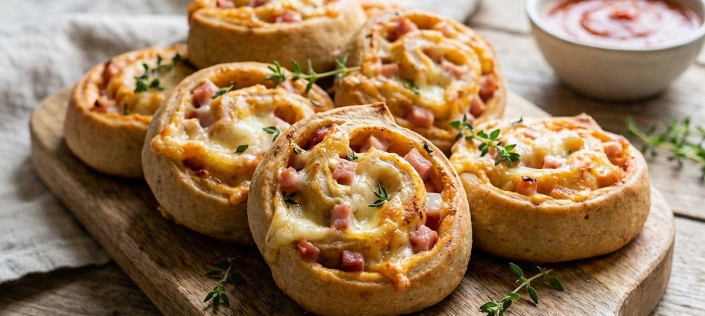 Servieren Sie die Pizza-Schnecken warm oder kalt mit einem frischen Kräuter-Dip oder einem bunten Salat. Sie lassen sich auch hervorragend einfrieren und bei Bedarf kurz im Ofen aufbacken.