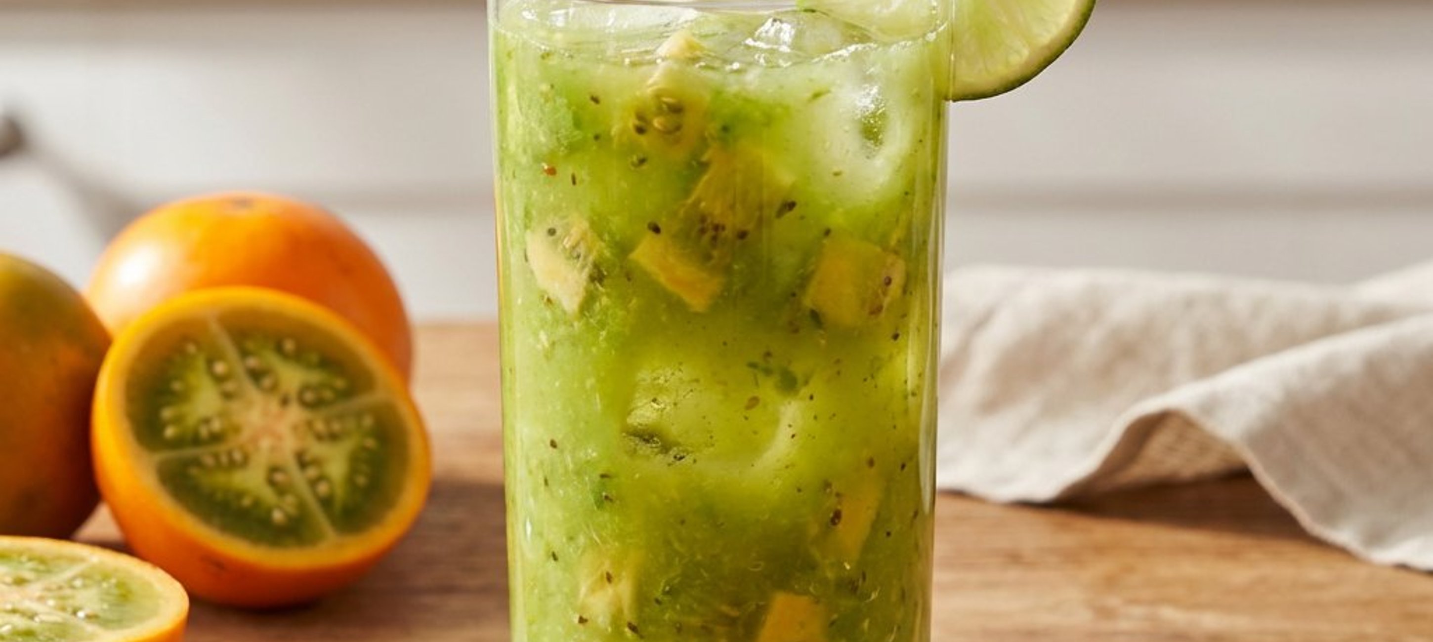 - 3Den Mix in ein Glas mit reichlich Eiswürfeln gießen. Die restlichen Lulo-Würfel hinzufügen, kurz umrühren und sofort eiskalt genießen.
