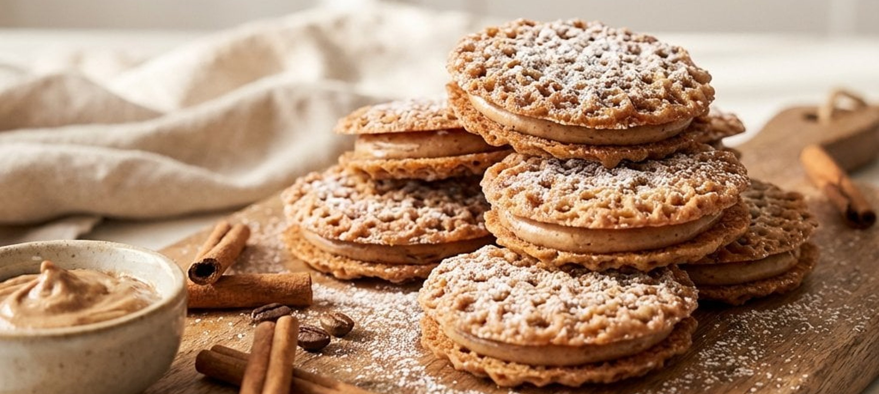 - 2Jeweils zwei Kekse mit der Creme zusammensetzen. Tipp: Die Creme mit einem Spritzbeutel kreisförmig aufspritzen und die Mitte für einen optischen Akzent mit etwas Marmelade oder Pflaumenmus füllen.