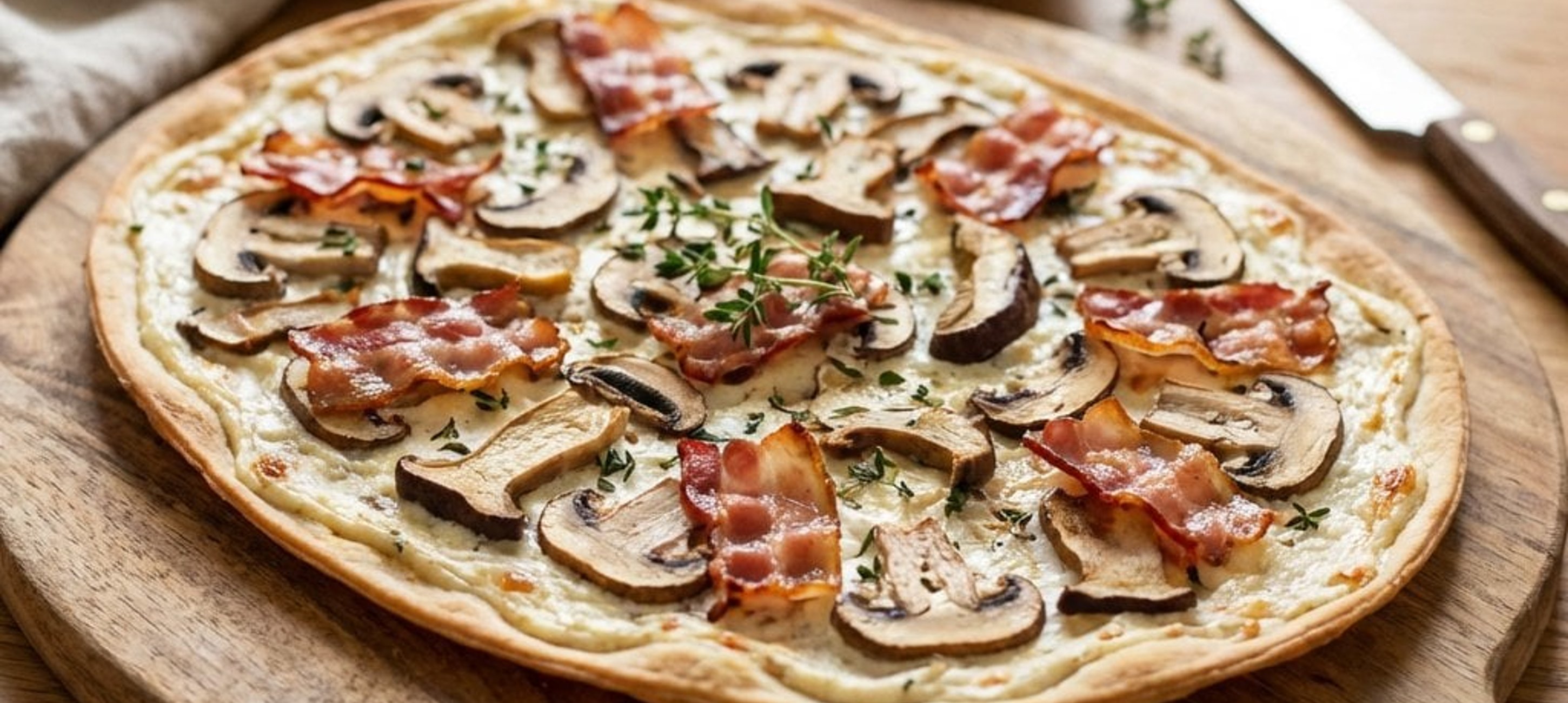 Tipp: Für ein besonders intensives Aroma können Sie die Steinpilze kurz in einer Pfanne ohne Fett anrösten, bevor Sie sie auf den Flammkuchen geben. Servieren Sie dazu einen kühlen Federweißer oder einen trockenen Riesling.