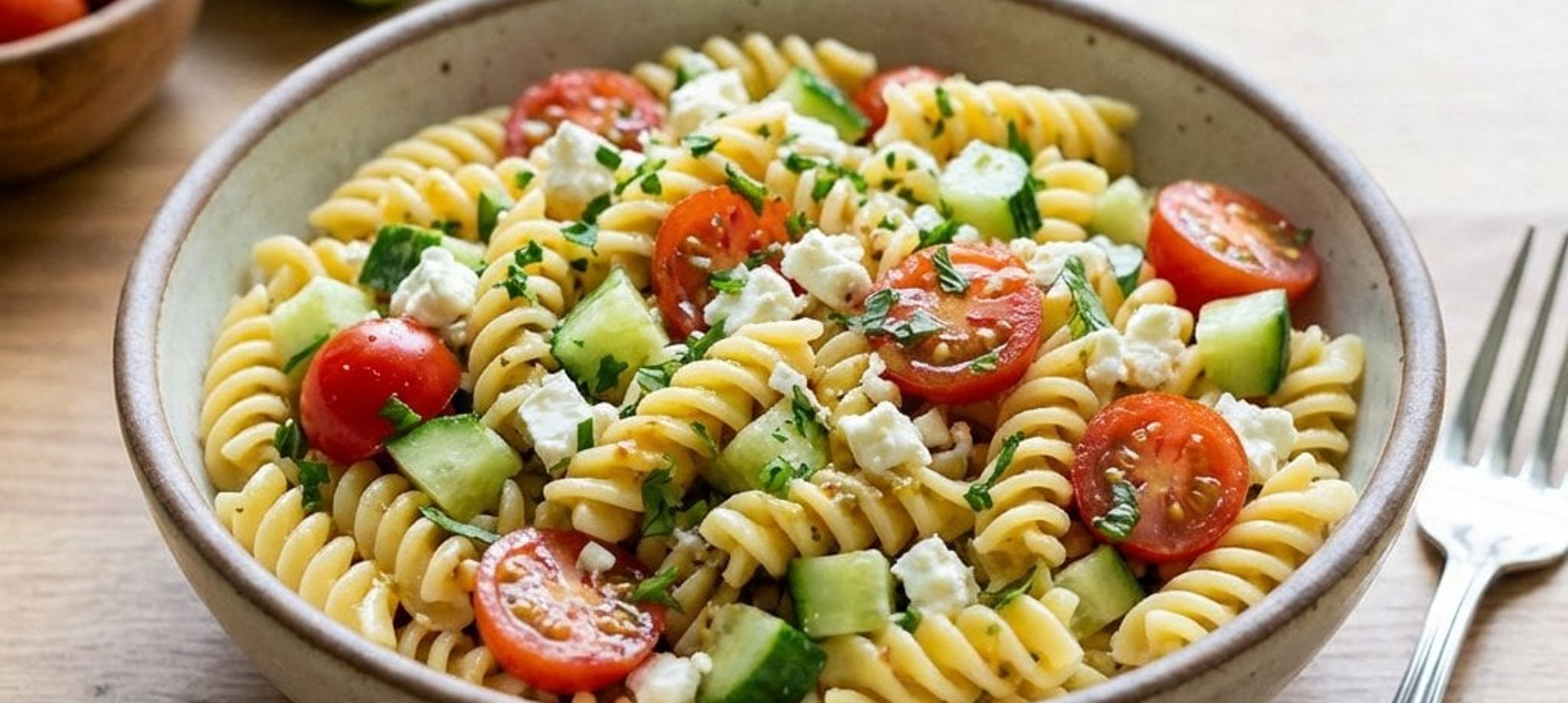 Tipp: Für ein intensiveres Aroma können Sie die Nudeln bereits lauwarm mit dem Dressing vermengen, so nehmen sie die Vinaigrette besser auf. Servieren Sie den Salat mit frischem Baguette oder als Beilage zu gegrilltem Hähnchen.