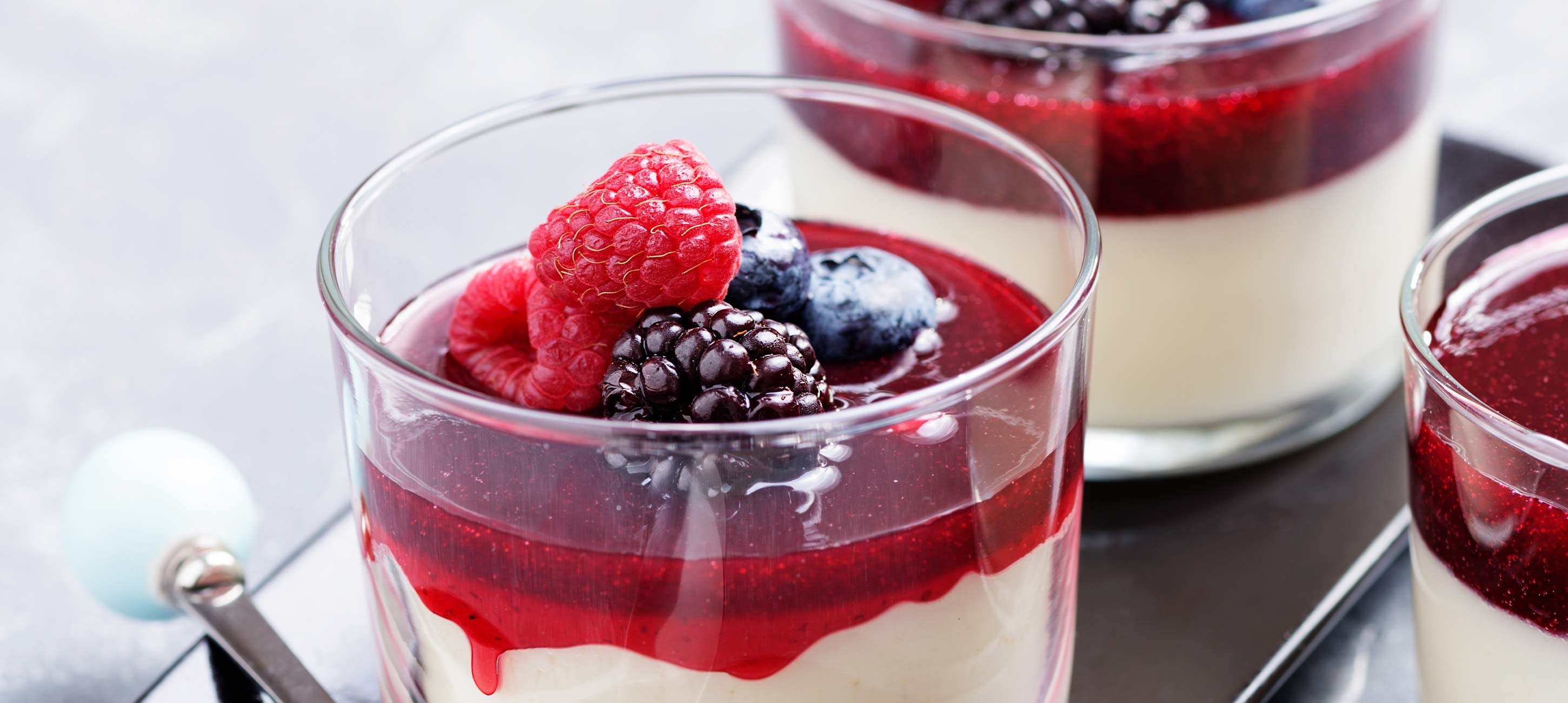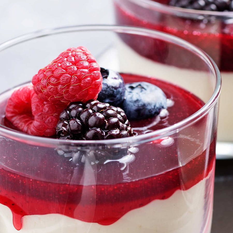 - 4Abkühlen lassen. Die Mousse in kleine Schüsseln füllen, die Beerensoße darüber geben und mit ein paar frischen Beeren verzieren.