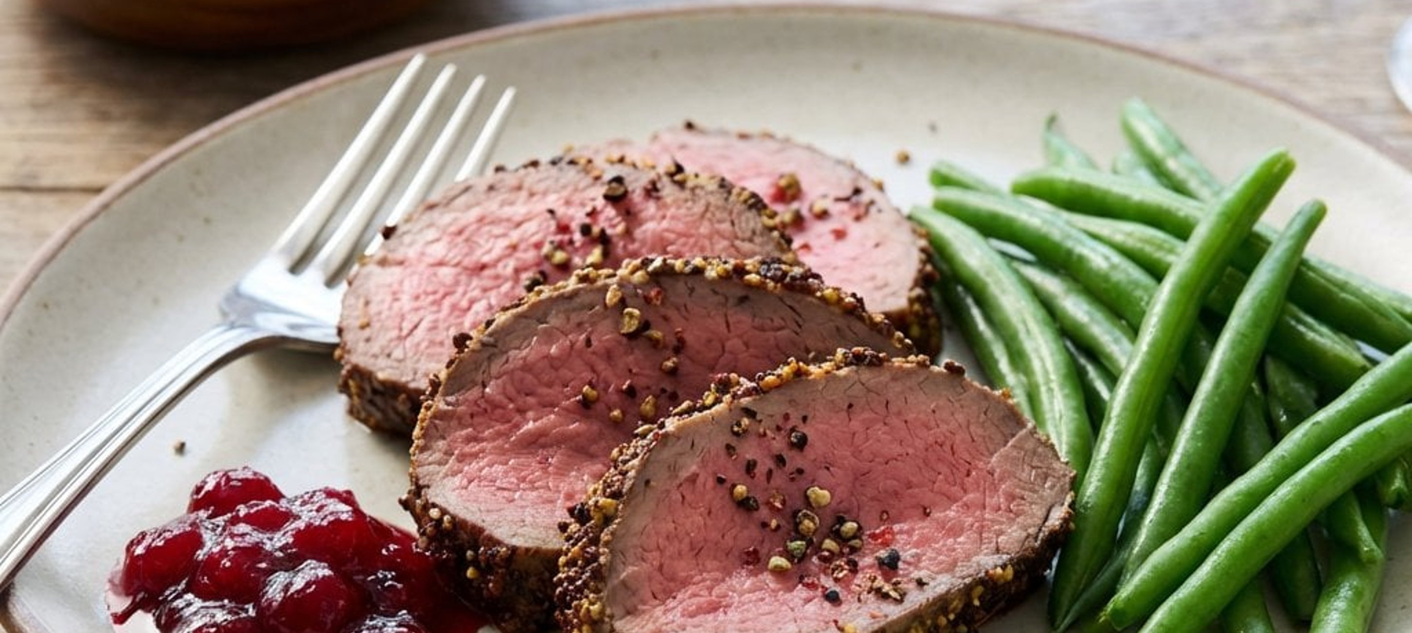 - 1Nehmen Sie das Fleisch eine Stunde vor der Zubereitung aus dem Kühlschrank, damit es Zimmertemperatur annimmt. Den bunten Pfeffer in einem Mörser grob zerstoßen.