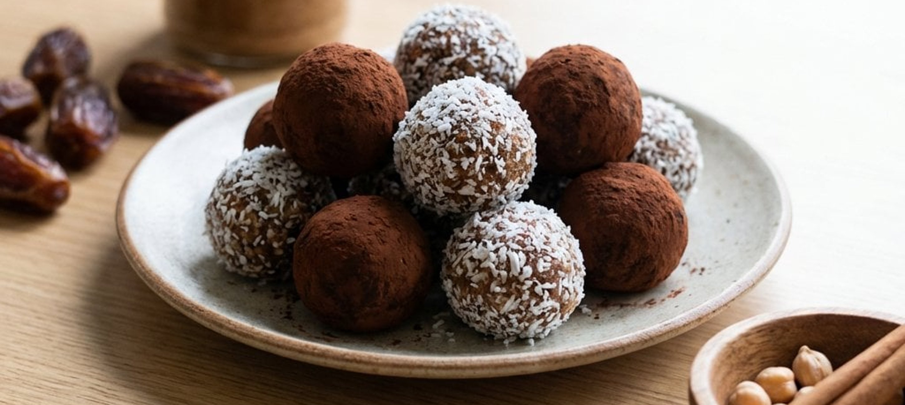 - 4Die Bällchen nach Belieben in Backkakao oder Kokosraspeln wälzen und servieren.