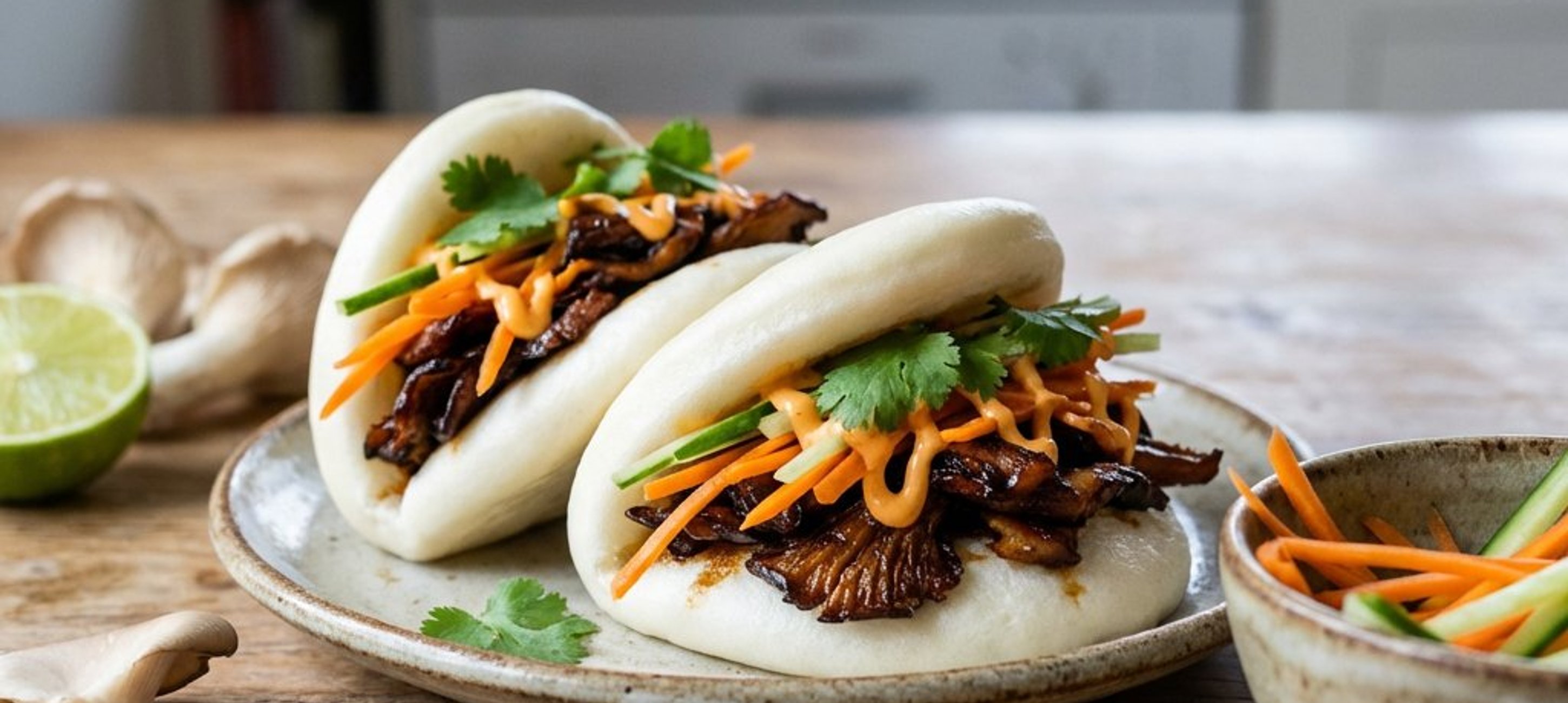 - 2Die gedämpften Bao Buns vorsichtig öffnen. Mit den knusprigen Pilzen, dem marinierten Salat und frischem Koriander füllen. Mit der Sriracha-Mayo (Sriracha und Mayonnaise vermischt) toppen und servieren.