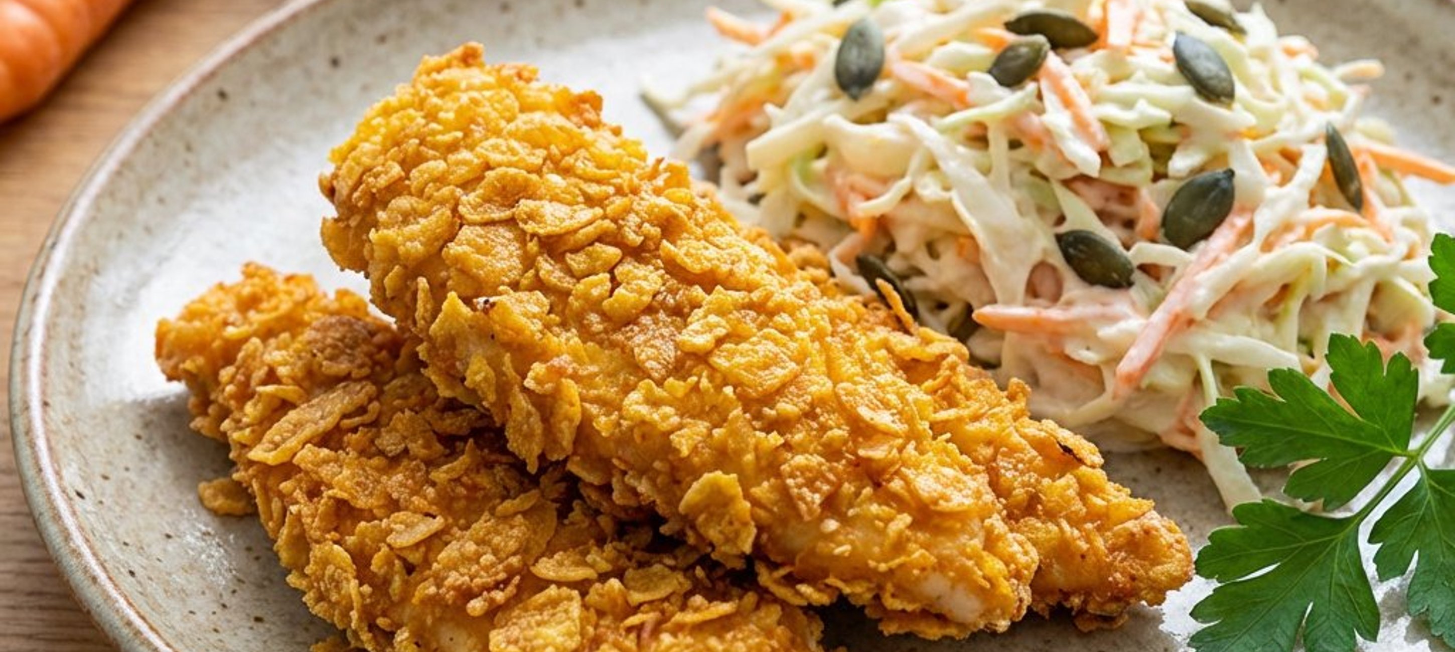 Tipp: Für eine besonders knusprige Panade können Sie die Cornflakes mit den Händen zerdrücken, sodass noch kleine Stückchen erhalten bleiben. Stampfkartoffeln mit etwas Butter runden das Gericht perfekt ab.
