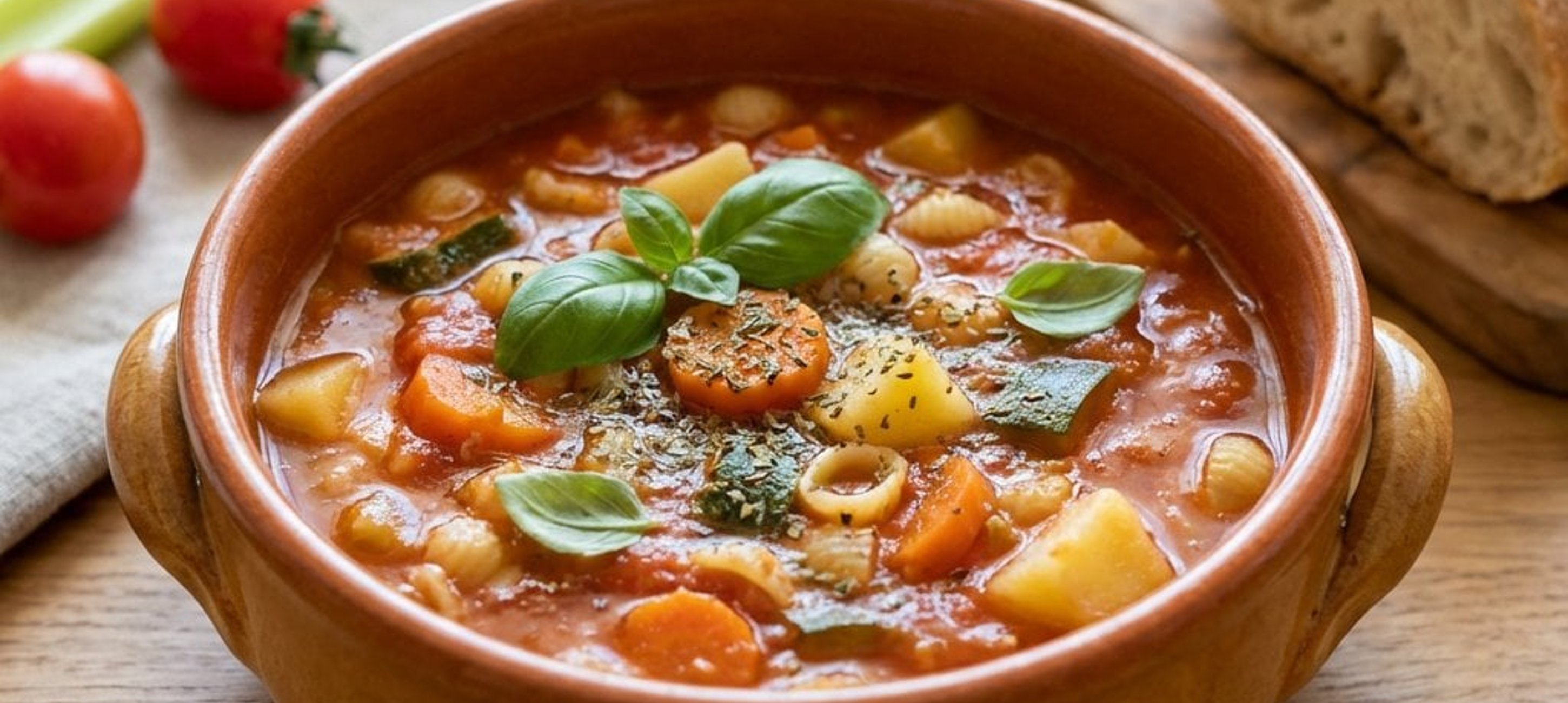 - 4Die fertige Minestrone auf tiefe Teller verteilen und heiß servieren. Nach Belieben mit etwas frischem Basilikum oder Parmesan garnieren.