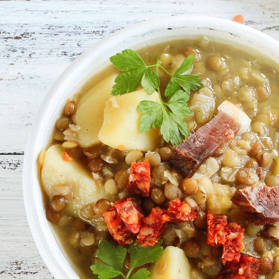 Dieser Linseneintopf wärmt besonders in der kalten Jahreszeit von innen auf. Zugleich sind Linsen echte Proteinbomben und daher besonders zu empfehlen. Lass uns wissen, wie dir der Eintopf geschmeckt hat! #knusprküche