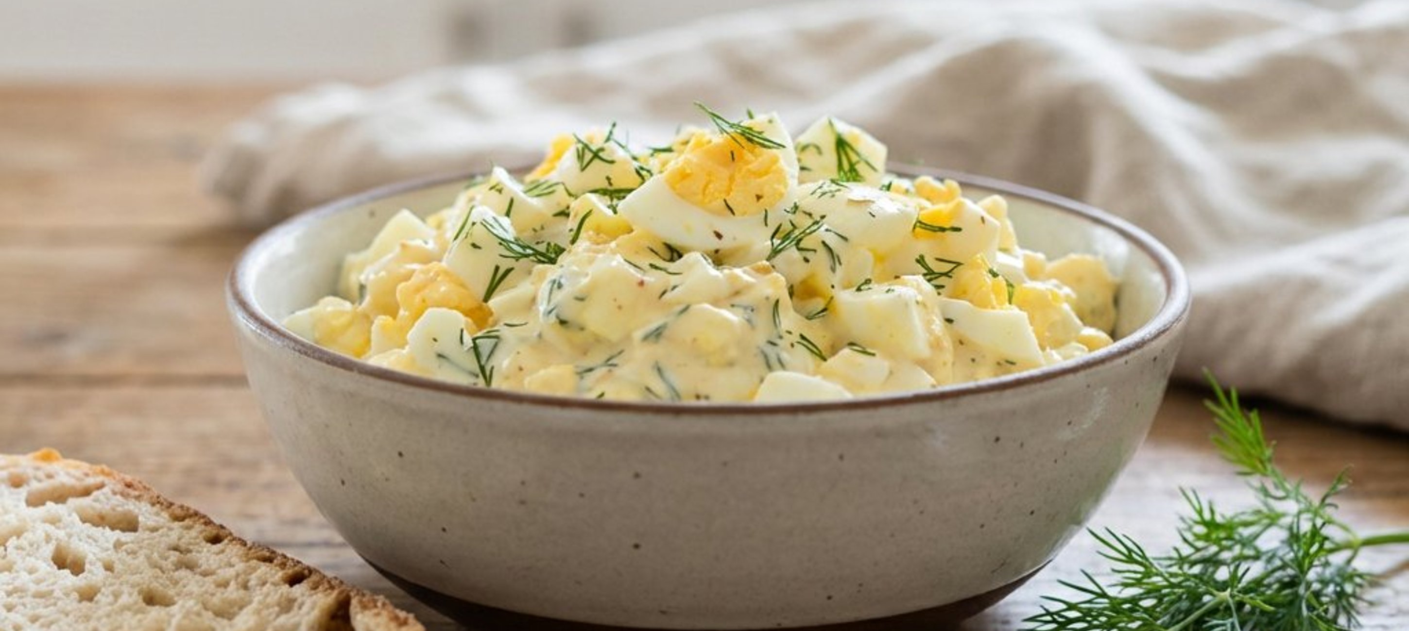 - 2In einer großen Schüssel den griechischen Joghurt mit dem fein gehackten Dill, Senf und Zitronensaft glatt rühren. Die abgekühlten Eier pellen, in kleine Würfel schneiden und unter die Joghurtmasse heben. Alles gut vermengen, mit Meersalz und Pfeffer abschmecken und servieren.