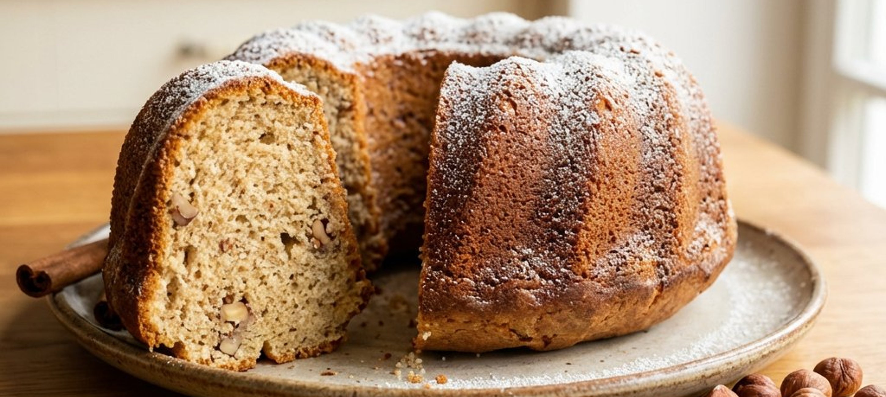 - 8Vor dem Servieren den Gugelhupf großzügig mit Puderzucker bestäuben.