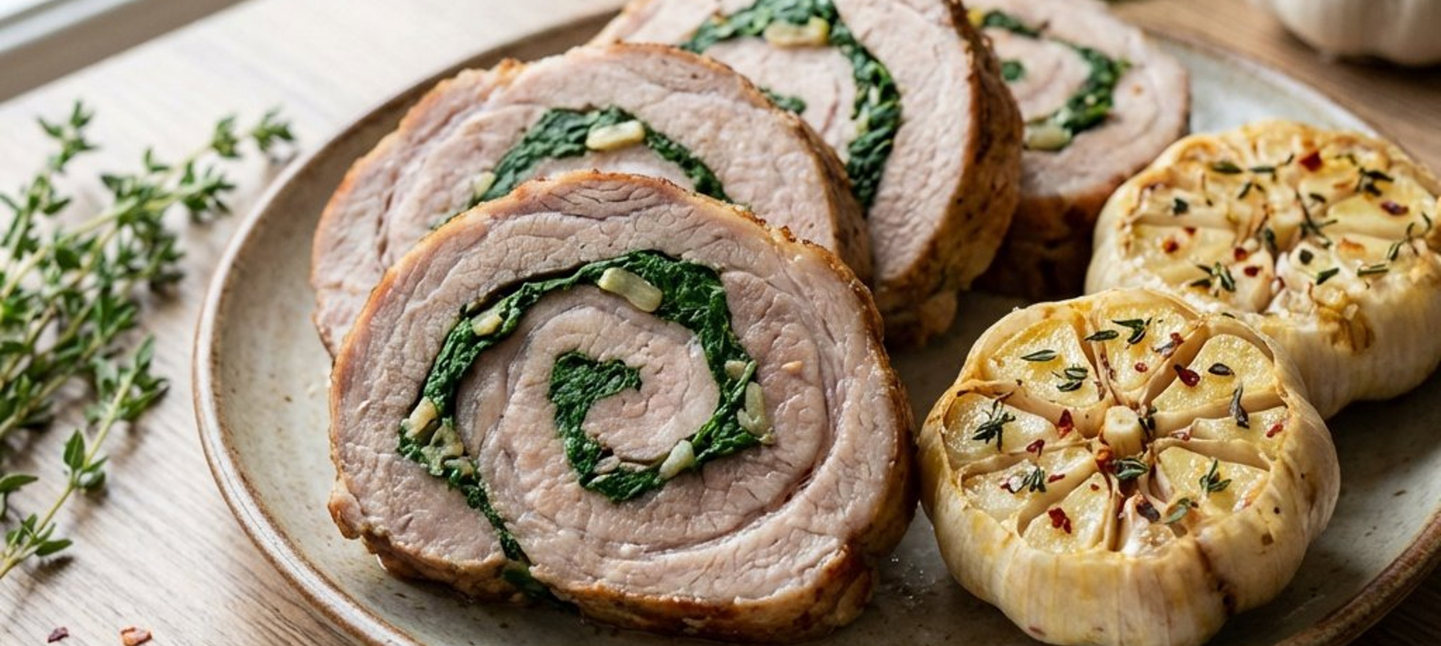 Servieren Sie die Roulade mit einem cremigen Kartoffelstampf oder einem frischen Baguette, um den köstlichen Bratensaft und den weichen, gerösteten Knoblauch voll auszukosten. Ein Glas kräftiger Weißwein passt hervorragend dazu.
