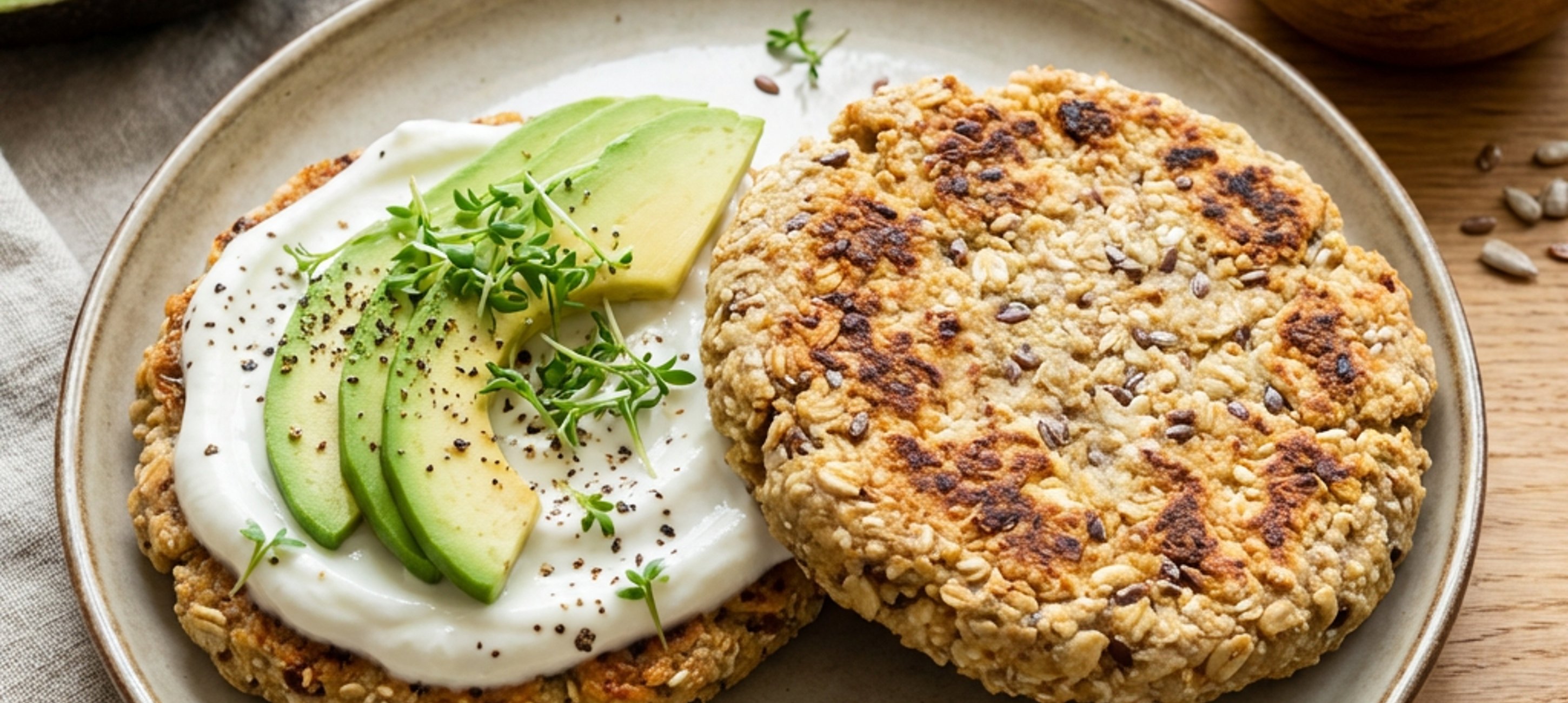 - 7Für die herzhafte Variante, die Avocado halbieren, von der Schale befreien und in Scheiben schneiden . Das Pfannenbrot mit Arla Buko® Balance bestreichen, mit Avocado belegen, salzen und pfeffern und mit Kresse bestreuen.