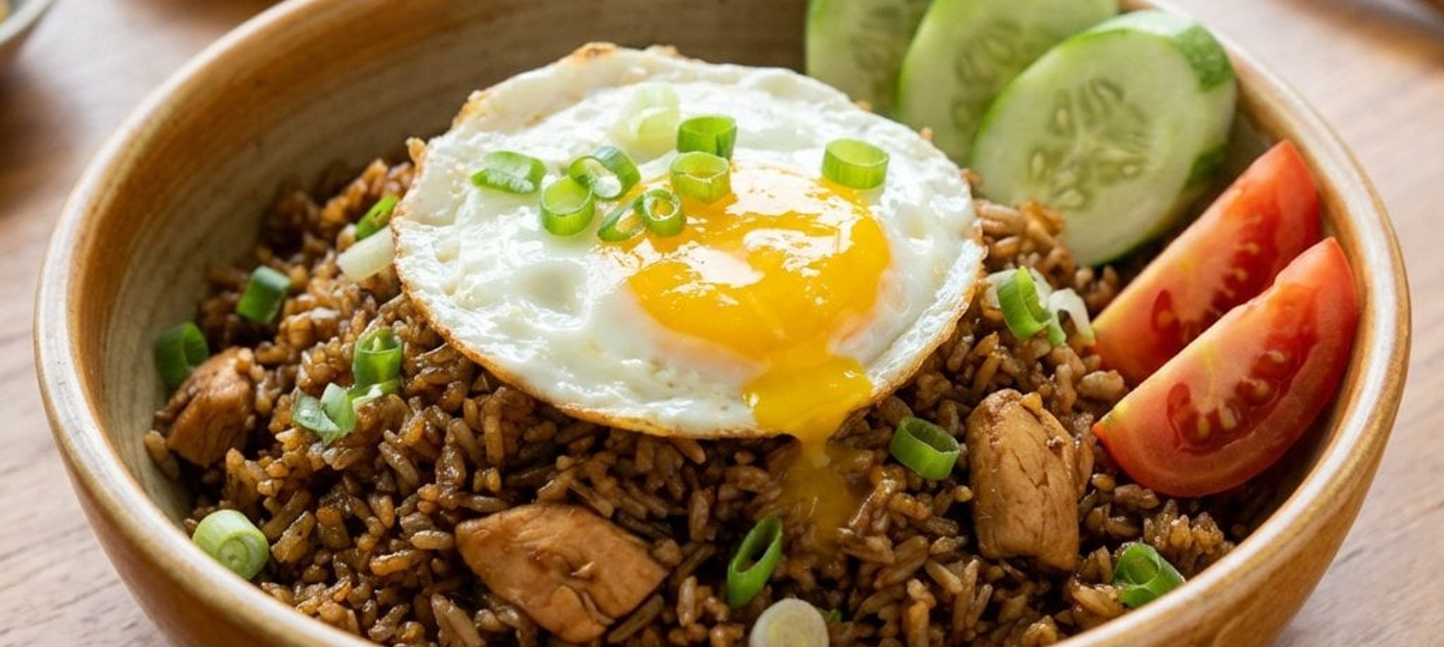 Ein authentisches Nasi Goreng lebt von der Hitze! Braten Sie den Reis bei hoher Temperatur an, damit er die Aromen der Marinade perfekt aufnimmt und eine leicht knusprige Textur erhält. Ein flüssiger Eidotter dient als natürliche Sauce für den Reis.