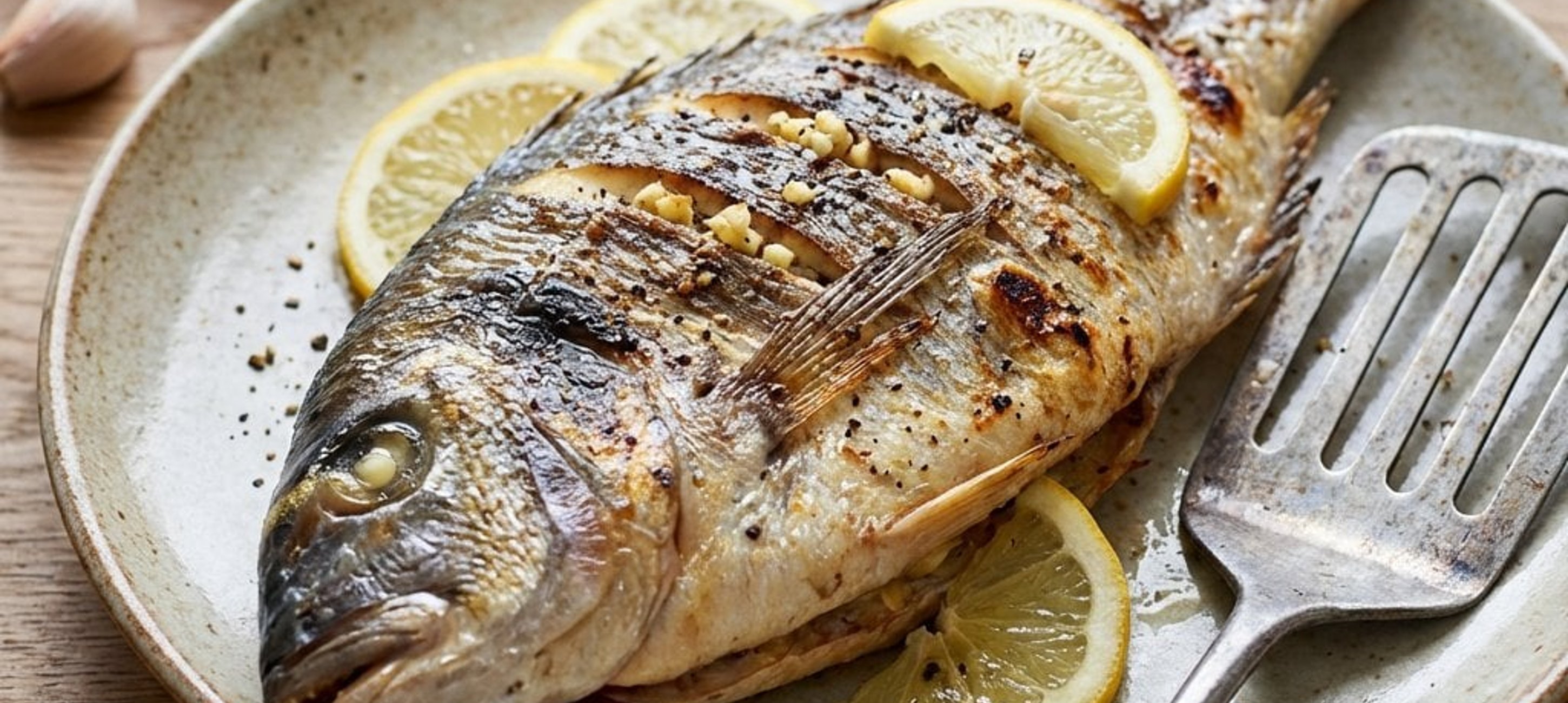 - 3Die Fische von innen und außen großzügig mit Salz und Pfeffer würzen. Anschließend mit dem Knoblauchöl einreiben, dabei besonders darauf achten, dass das Öl auch in die Einschnitte gelangt.
