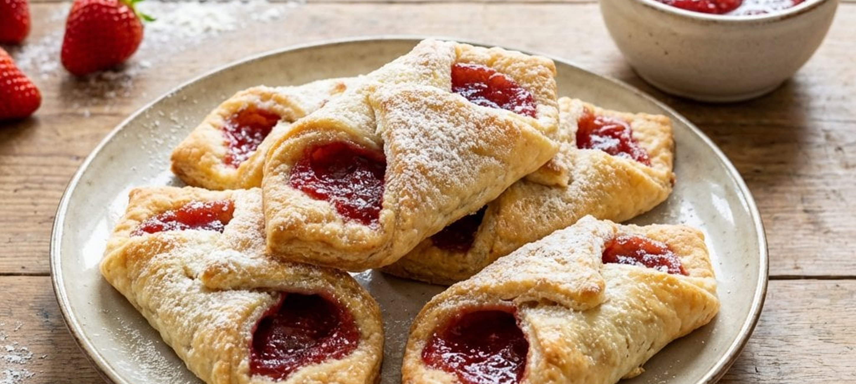 - 6Backen Sie die Quarktaschen im vorgeheizten Ofen für 15–17 Minuten goldbraun.