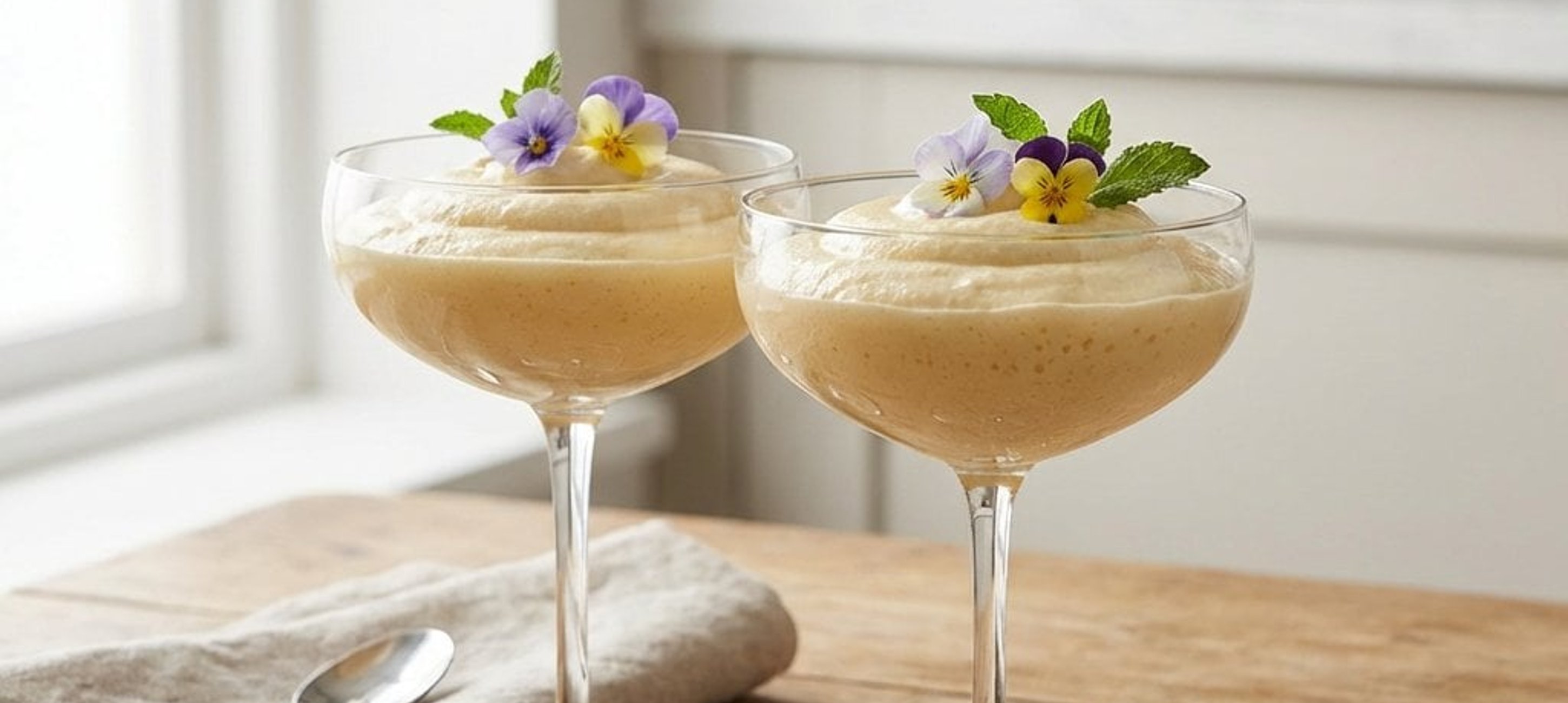 - 1Die Schlagsahne in einer separaten Schüssel steif schlagen. Die Sahne vorsichtig mit einem Teigschaber unter die Eigelb-Champagner-Mischung heben, dabei behutsam vorgehen, um die Luftigkeit zu bewahren. Die fertige Mousse auf Dessertgläser verteilen, abdecken und für mindestens 4 Stunden, am besten über Nacht, im Kühlschrank fest werden lassen. Vor dem Servieren mit frischen essbaren Blüten dekorieren. Die Mousse wird am besten mit einem kleinen Löffel genossen.