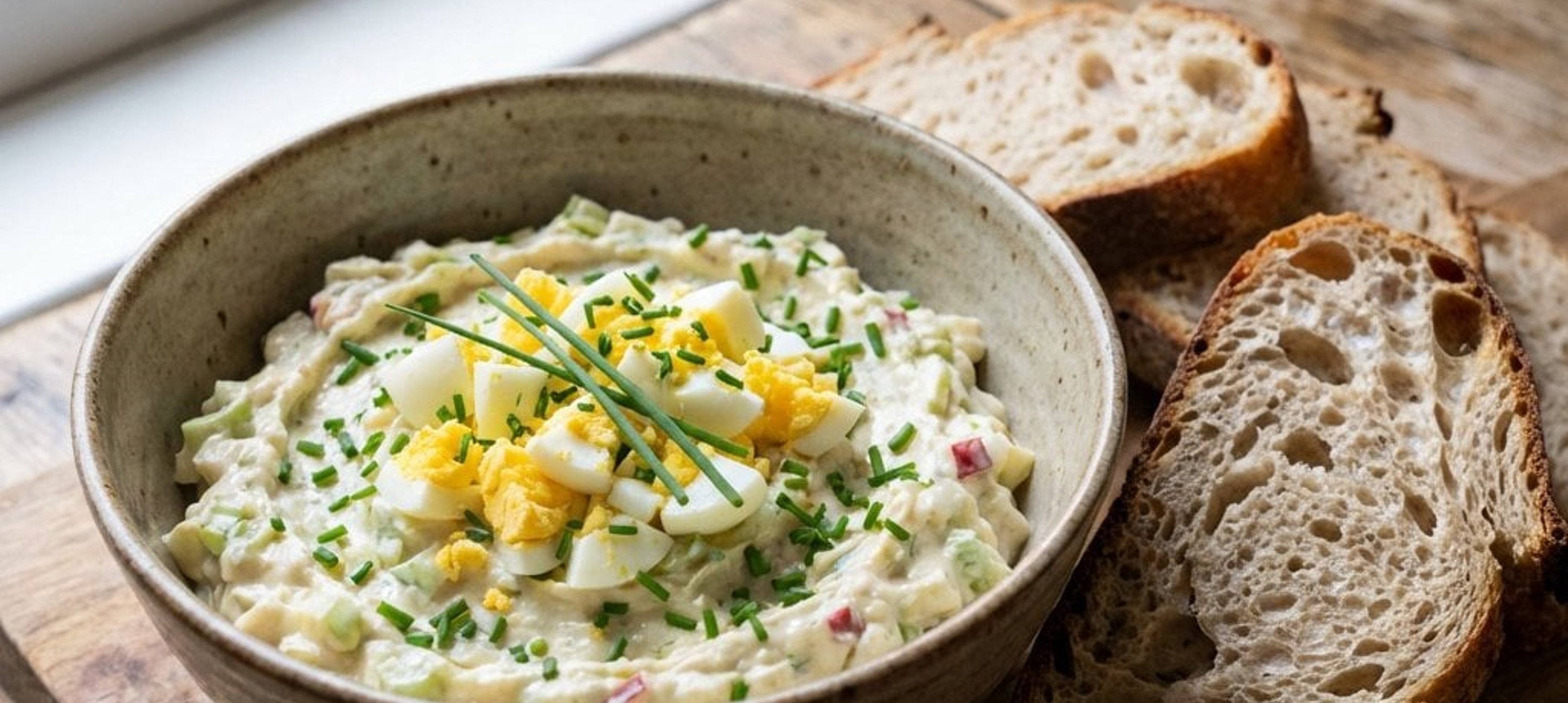 Servieren Sie diesen Aufstrich auf einer Scheibe frischem Sauerteigbrot und garnieren Sie ihn mit etwas Kresse oder Schnittlauch für das perfekte Frühstückserlebnis.