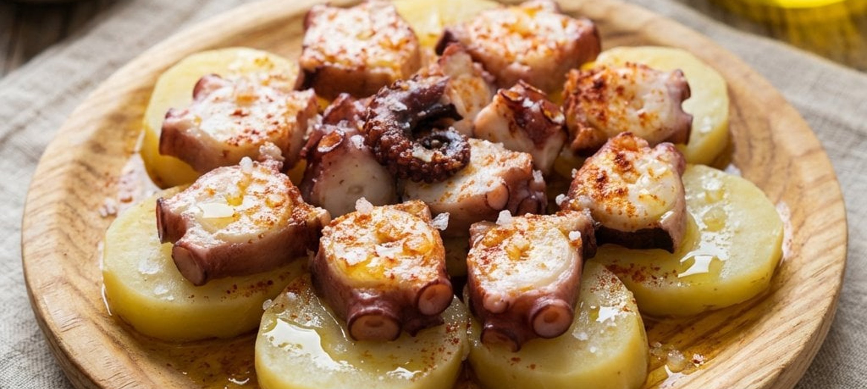 Servieren Sie den Pulpo traditionell auf einem Holzteller, um überschüssiges Olivenöl aufzusaugen und den rustikalen Charme zu bewahren. Ein Glas kühler Albariño passt hervorragend dazu!