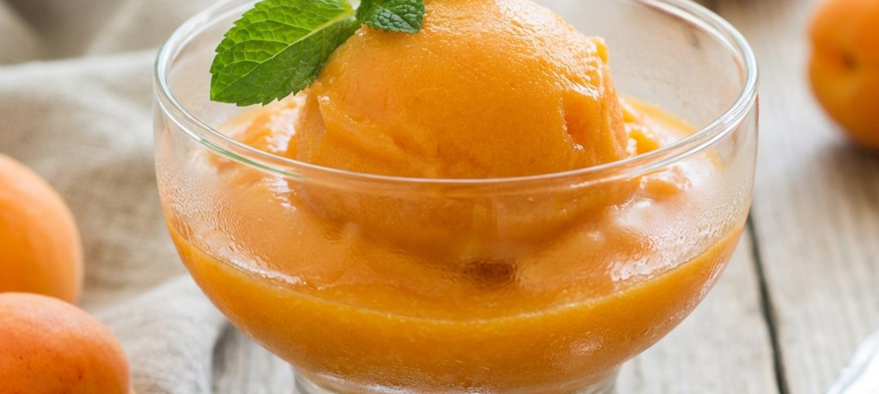 Ein kleiner Spritzer Zitronensaft hebt die Fruchtigkeit der Aprikosen noch mehr hervor! Servieren Sie das Sorbet in vorgekühlten Gläsern, damit es nicht so schnell schmilzt.