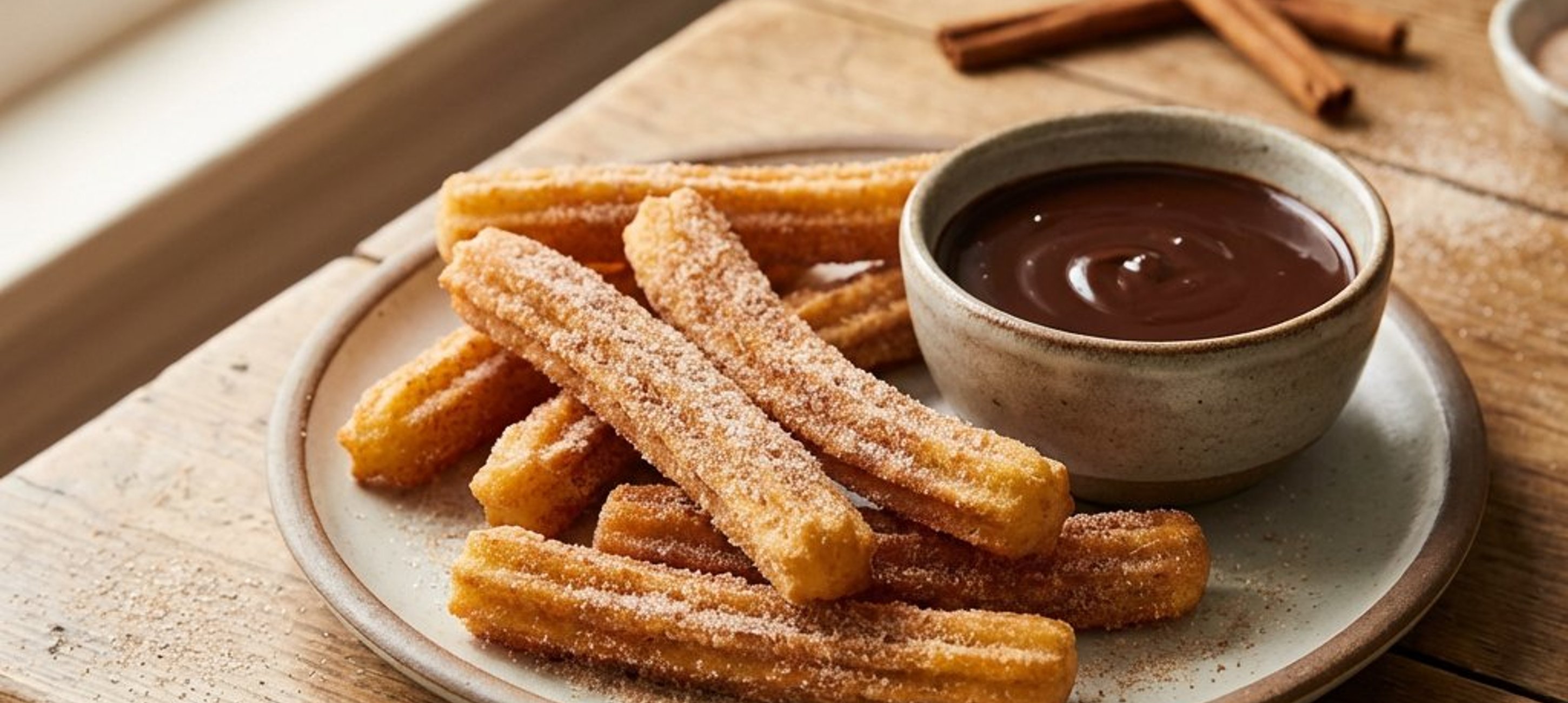 Tipp: Verwenden Sie eine Sterntülle für die typischen Rillen der Churros – diese sorgen für extra viel Knusprigkeit und halten den Zimtzucker besser fest. Servieren Sie die Churros am besten sofort, solange sie noch warm sind!