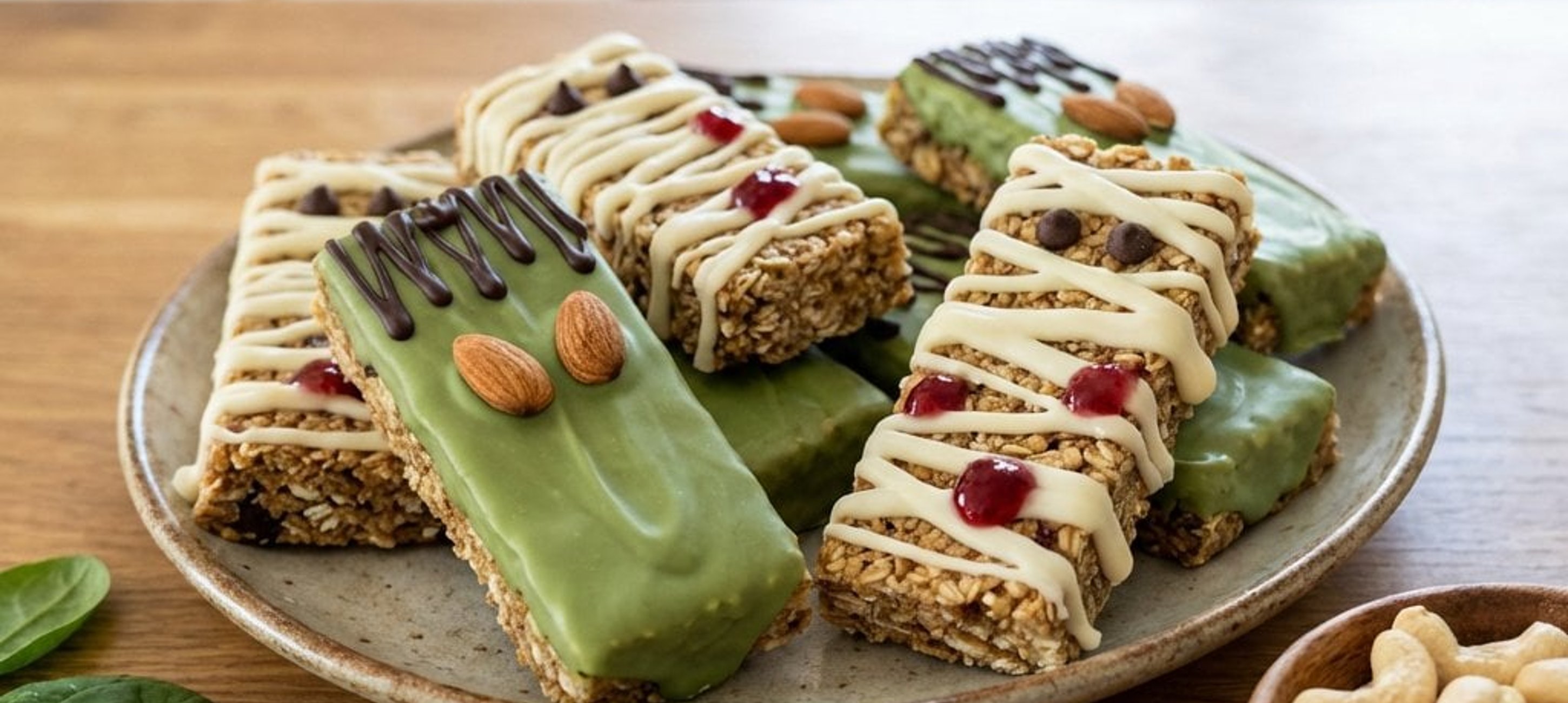 - 2Den Spinat mit etwas Wasser fein pürieren. Die weiße Schokolade im Wasserbad schmelzen. Die Hälfte der weißen Schokolade mit dem Spinatpüree grün einfärben. Für die 'Frankenstein'-Riegel die Riegel in die grüne Schokolade tauchen. Nach dem Trocknen mit geschmolzener Zartbitterschokolade Haare aufmalen und Mandeln als Augen aufsetzen. Die restliche weiße Schokolade in einen Spritzbeutel füllen und die 'Mumien'-Riegel mit Streifen verzieren. Mit Marmelade kleine rote Augen aufspritzen.