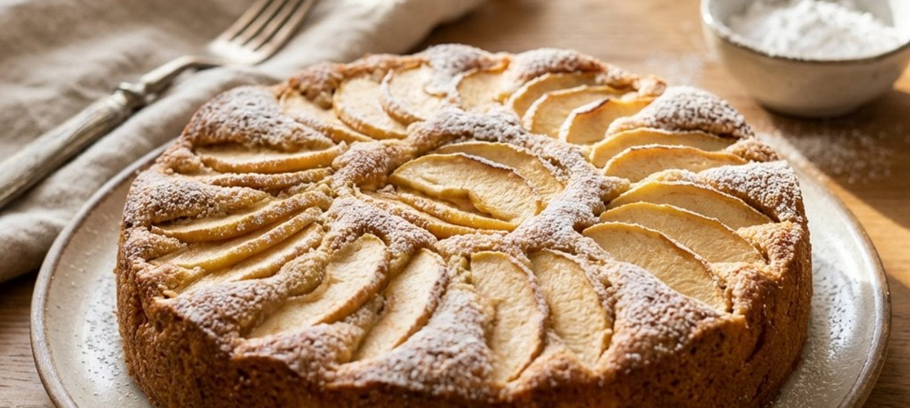 Backen Sie den Kuchen am besten mit säuerlichen Äpfeln wie Boskoop oder Braeburn für das beste Aroma. Ein Klecks Schlagsahne oder Vanilleeis passt ebenfalls hervorragend dazu!