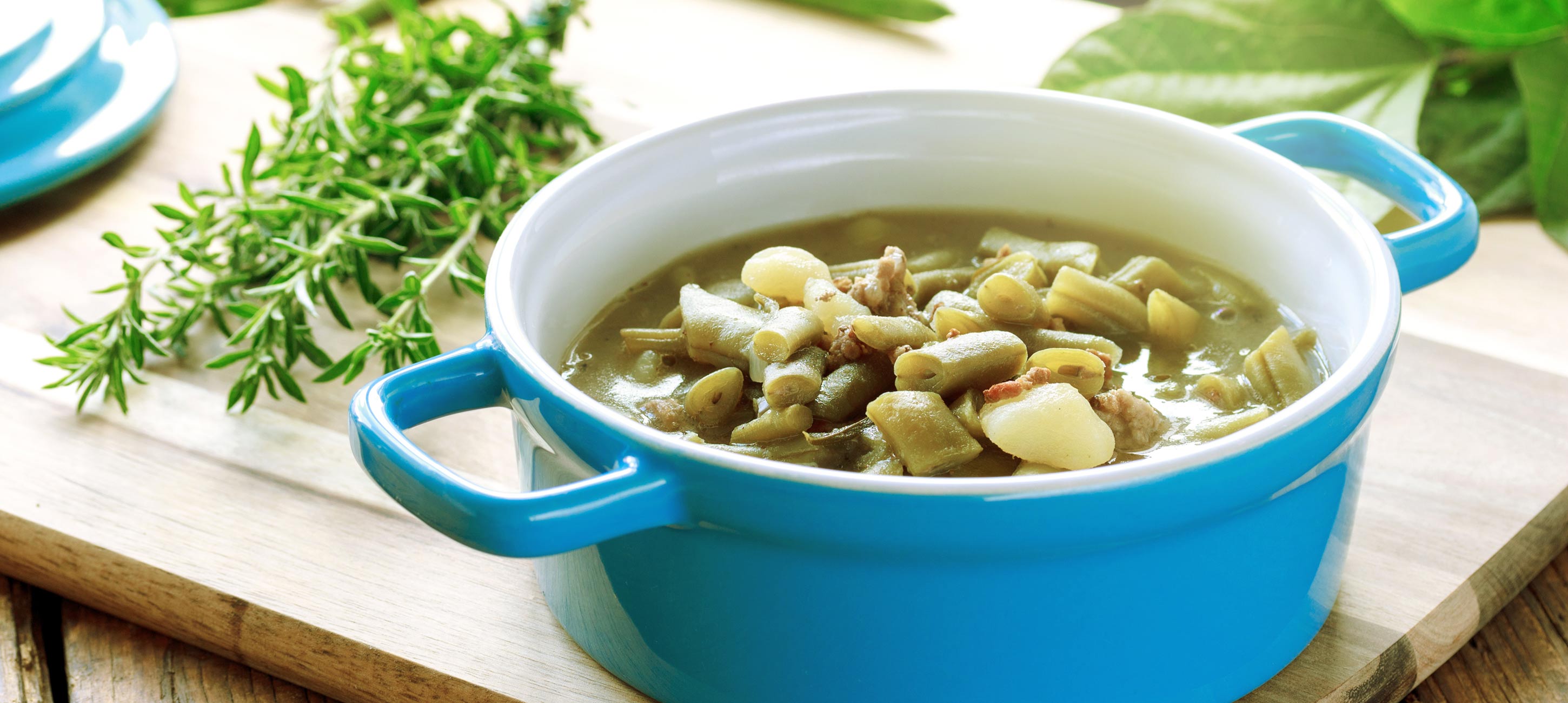 Dekoriere deinen Bohneneintopf mit Frühlingszwiebeln. Das verleiht deinem Eintopf einen extra frischen Look.