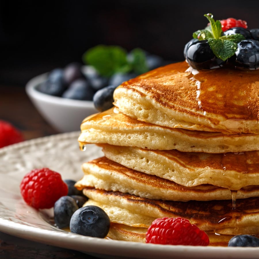 - 5Pancakes mit Topping nach Wahl servieren: Honig, Obst, Nußmus - einfach nach Vorlieben & Geschmack.