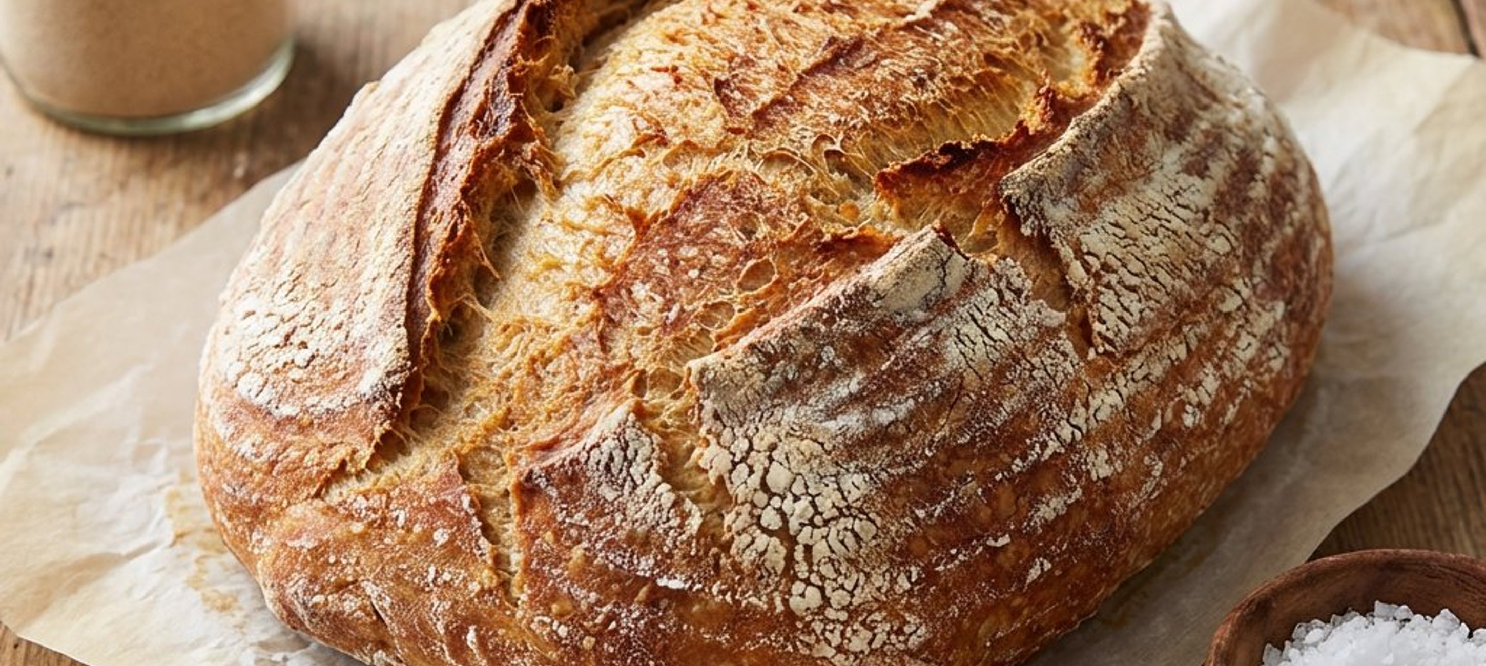 - 6Nach 30 Minuten den Deckel abnehmen und das Brot für weitere 10–12 Minuten offen fertig backen, bis die Kruste goldbraun und knusprig ist.
