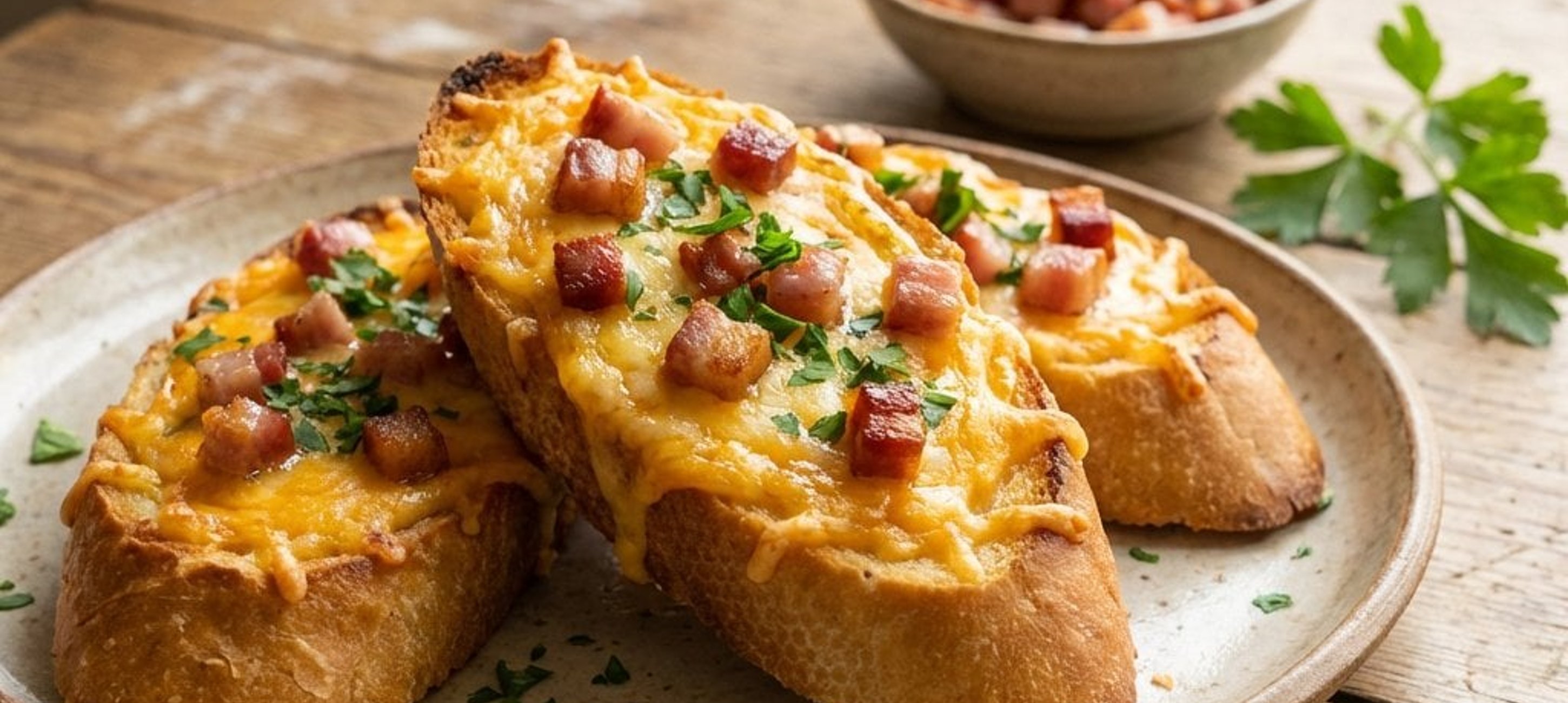 - 4Die Käsemischung gleichmäßig auf den Baguettescheiben verteilen und mit der restlichen Pancetta bestreuen.