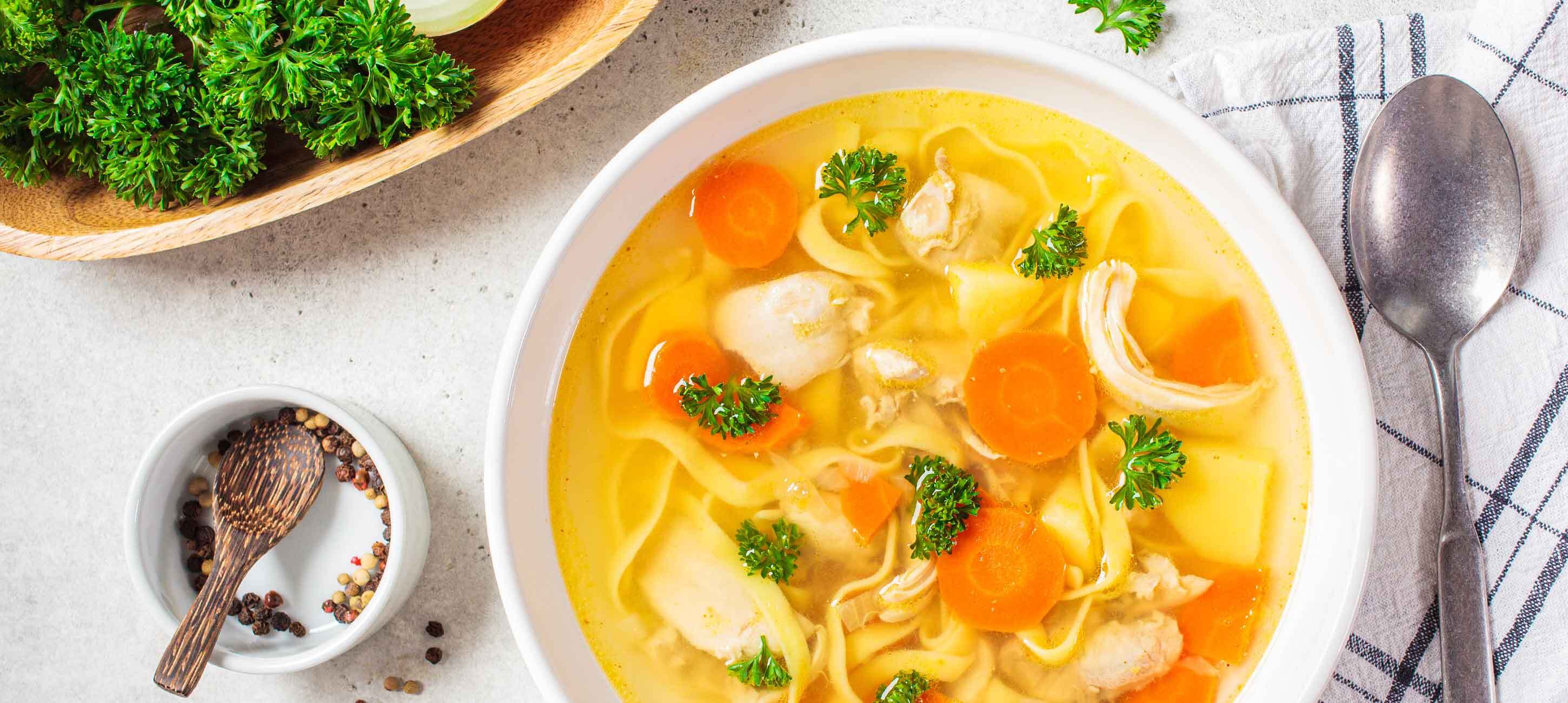 - 2Zusätzlich kann man den Geschmack der Hühnersuppe mit einer Prise Curry abrunden.