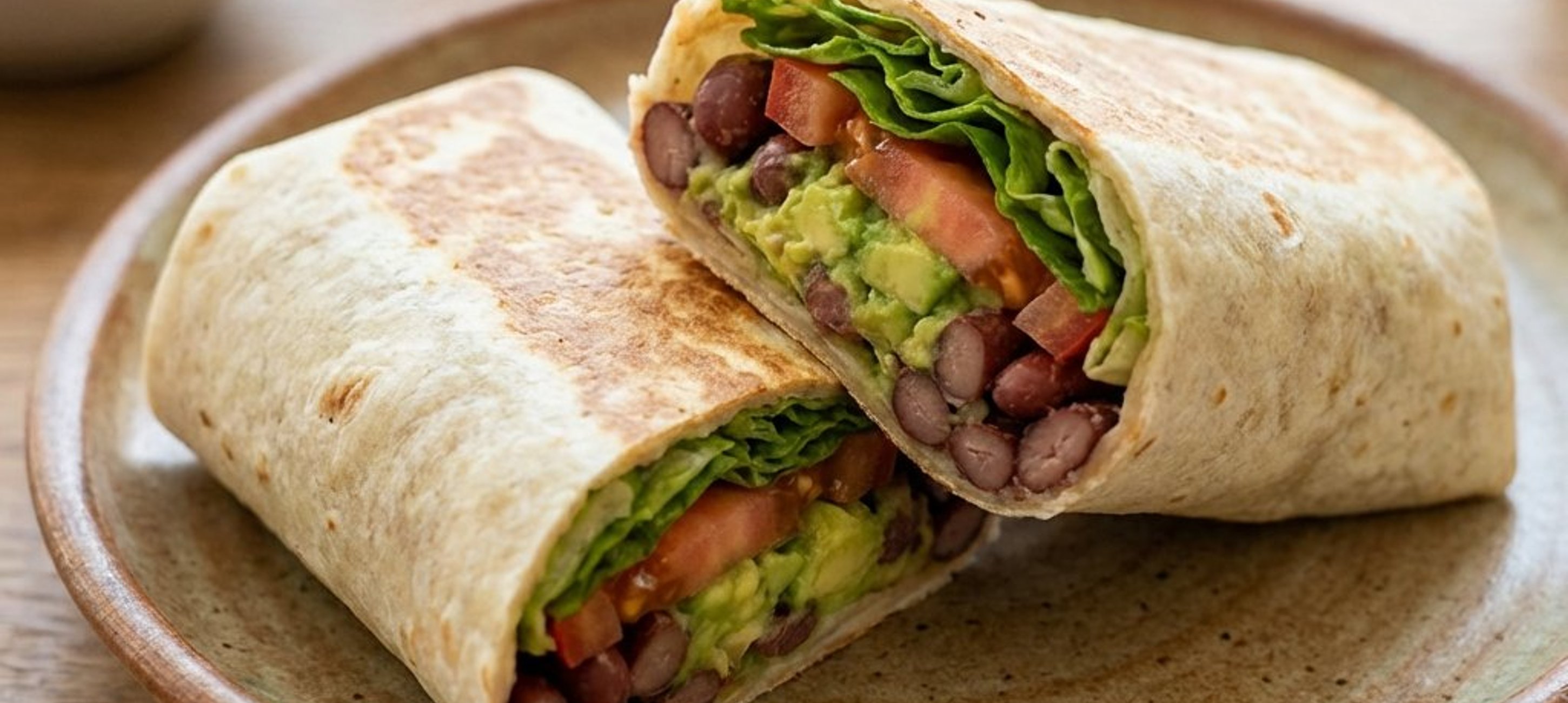 - 4Die Tortillas kurz erwärmen. Den gewaschenen Salat, die Bohnenmischung, die Avocado-Creme und die in Scheiben geschnittenen Tomaten gleichmäßig auf den Tortillas verteilen. Die Seiten einschlagen und vorsichtig aufrollen. Die Burritos in einer Pfanne ohne Fett von beiden Seiten kurz anrösten, bis sie leicht gebräunt sind. Sofort servieren.