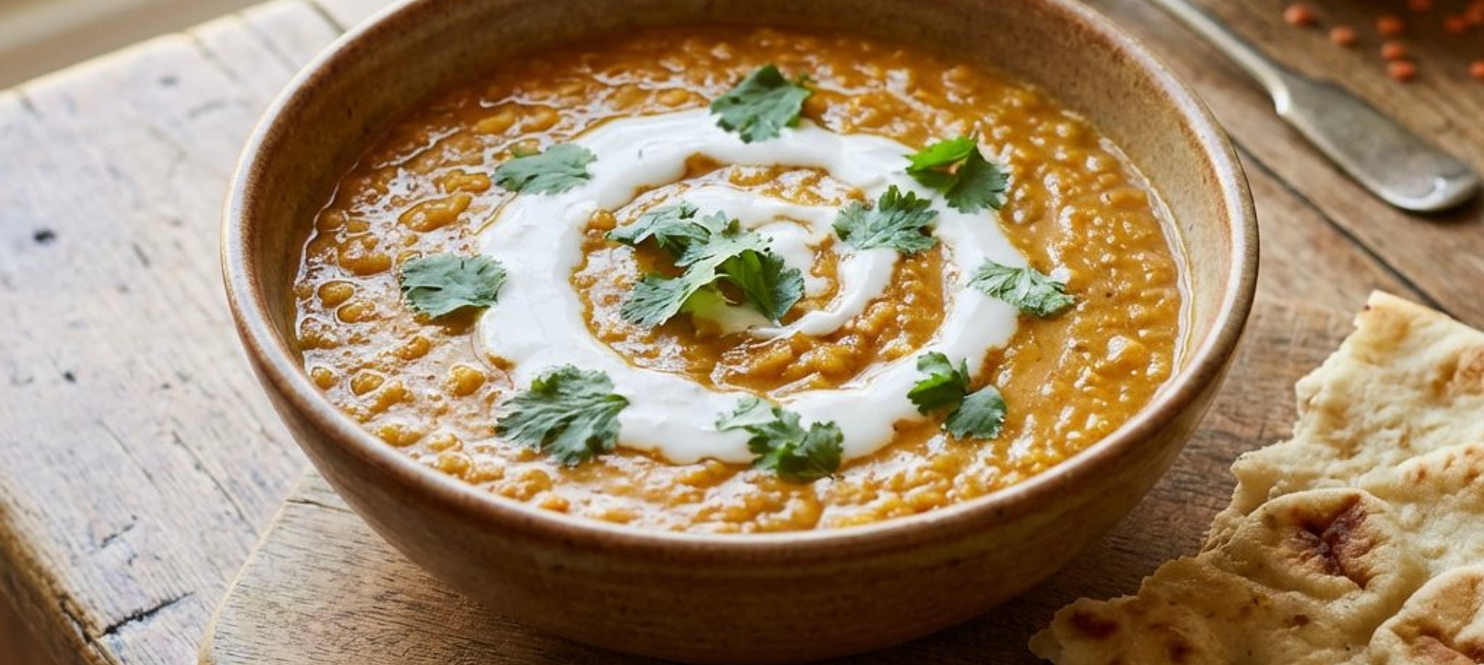 - 5Zum Schluss das Dhal mit Salz abschmecken und den frisch gehackten Koriander unterrühren. Zusammen mit dem warmen Naan-Brot servieren.