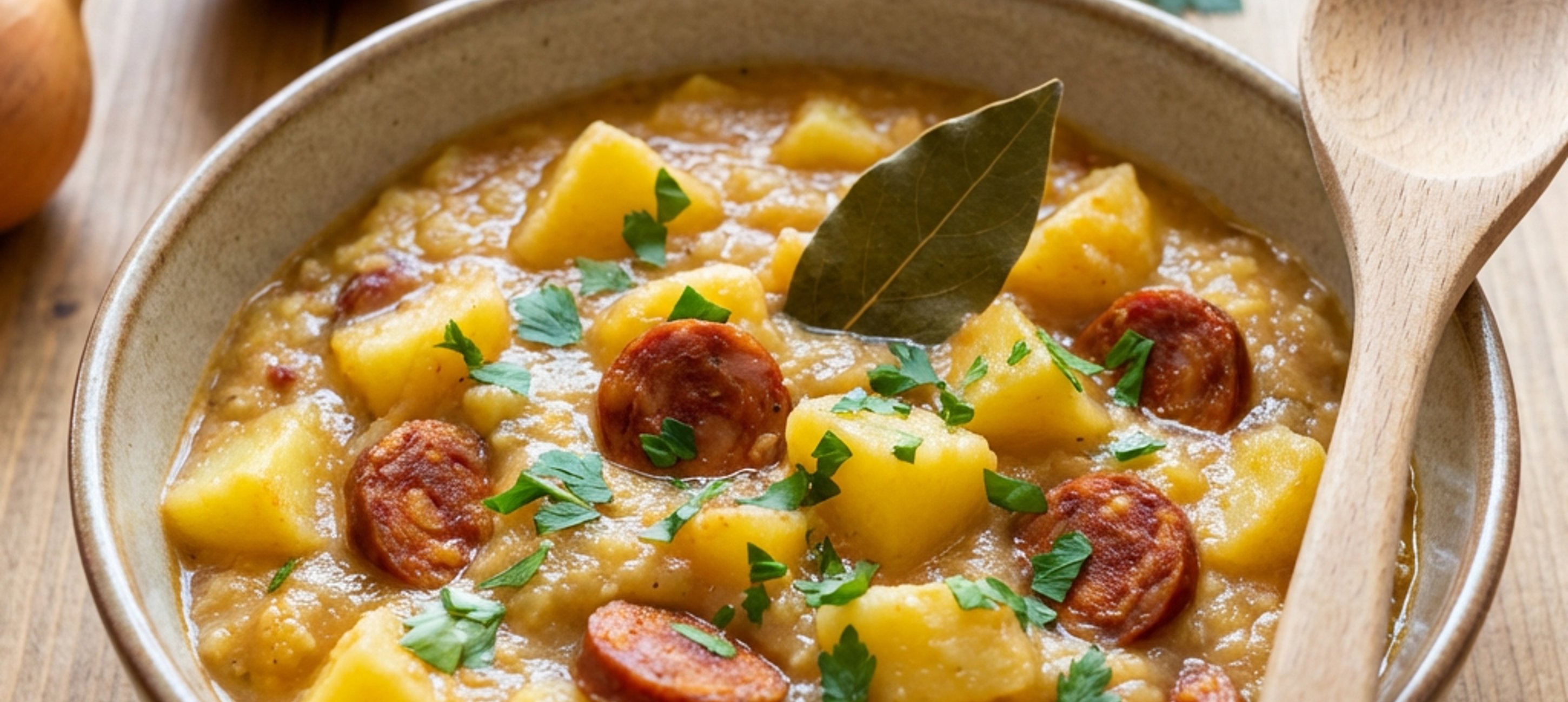 - 2Den Eintopf nun grob pürieren und die Chorizo-Wurst dazugeben. Alles im Anschluss weitere 10 Minuten köcheln lassen.