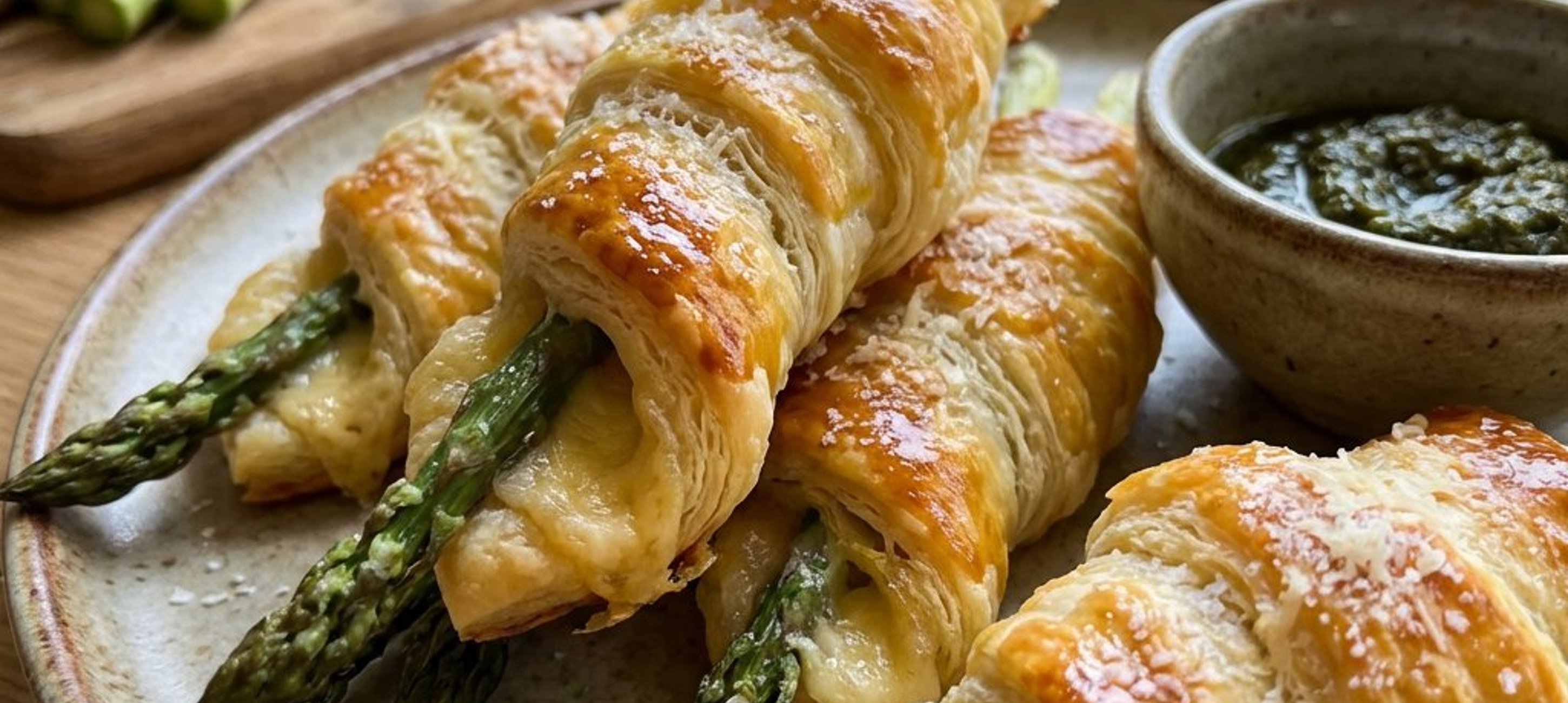 Ein toller Tipp: Wenn du den Spargel besonders würzig magst, kannst du die Teigstreifen vor dem Wickeln dünn mit dem Pesto bestreichen. So zieht das Aroma direkt in den Teig ein!