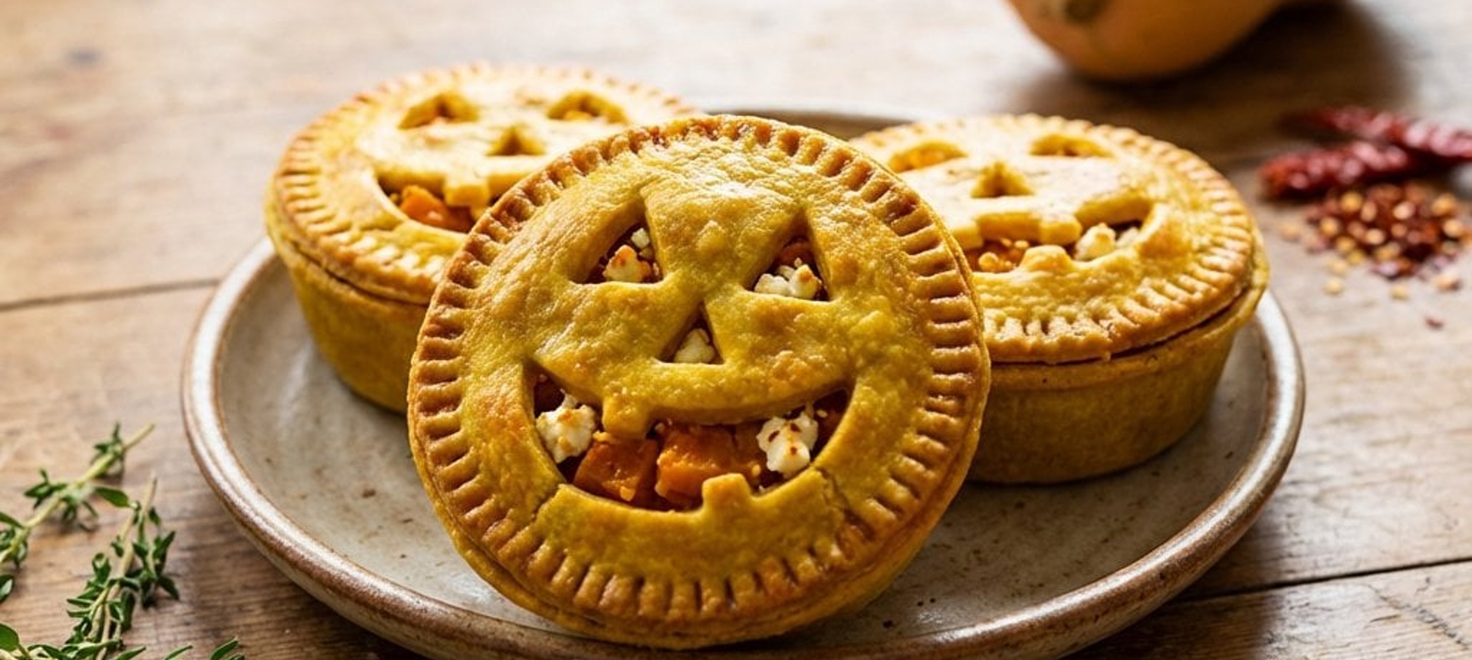 - 3Die größeren Teigkreise in die Muffinformen drücken. Mit der Kürbis-Feta-Mischung füllen und mit den Gesichter-Deckeln abdecken. Ränder leicht festdrücken.